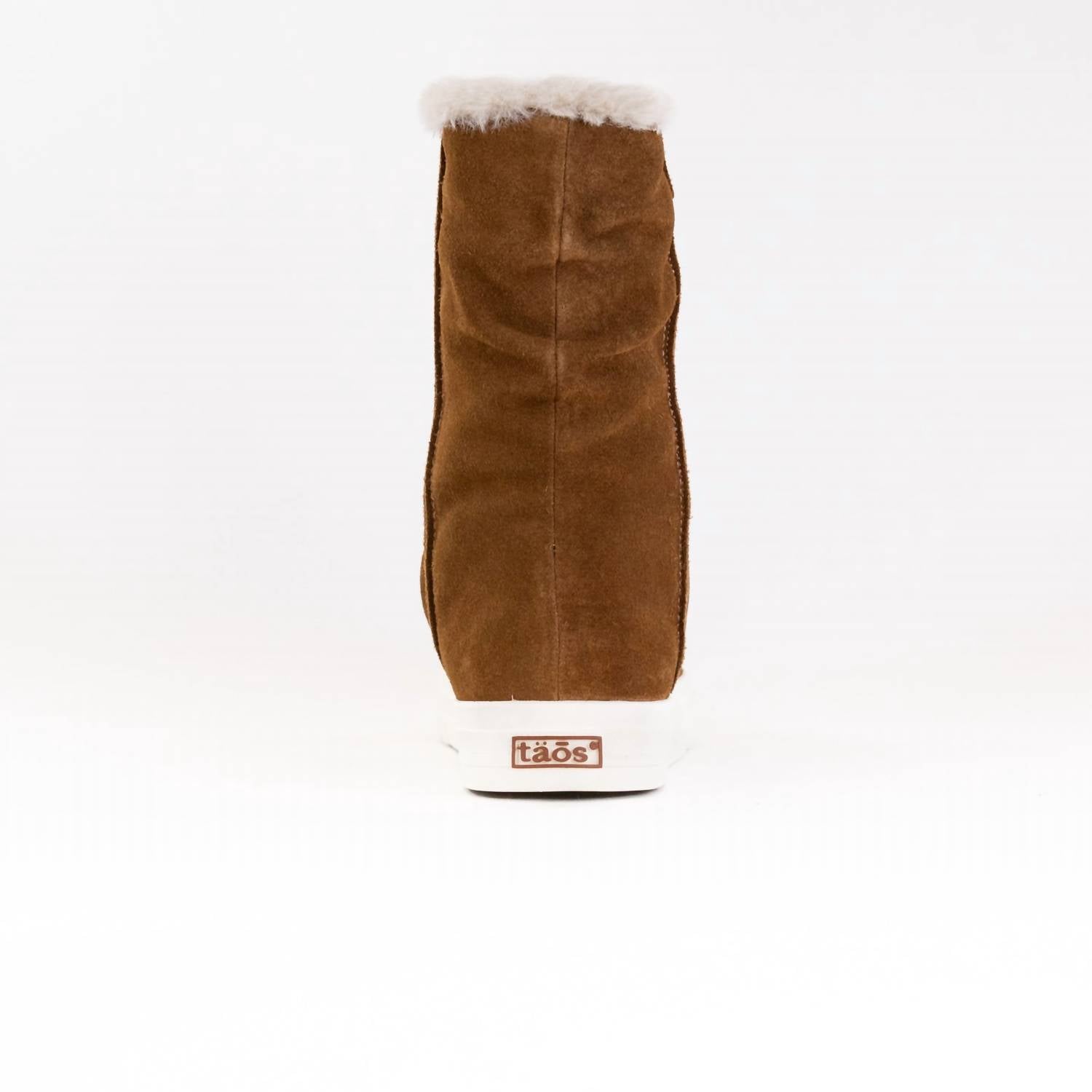 Say hello to the perfect, most versatile boot. The ankle height makes this style easily transition from day to night. Wear them with your favorite skinny jeans and tee for a more laid back look, or pair them with your favorite mini dress and jacket for a night out on the town. Discover the Women's Cozy Chic Boot by Taos in a warm chestnut hue, perfect for any all-season wardrobe. Crafted from water-resistant suede and lined with luxurious faux fur, these boots offer arch and metatarsal support, making them both stylish and comfortable. The flexible, durable rubber outsole, along with a 2-inch low heel and 13 3/8" boot circumference, ensures lasting comfort for après ski or a dinner party. Includes the Curves & Pods® removable footbed and orthotic-friendly design, with care instructions to buff with leather cleaner and wipe with a dry cloth.