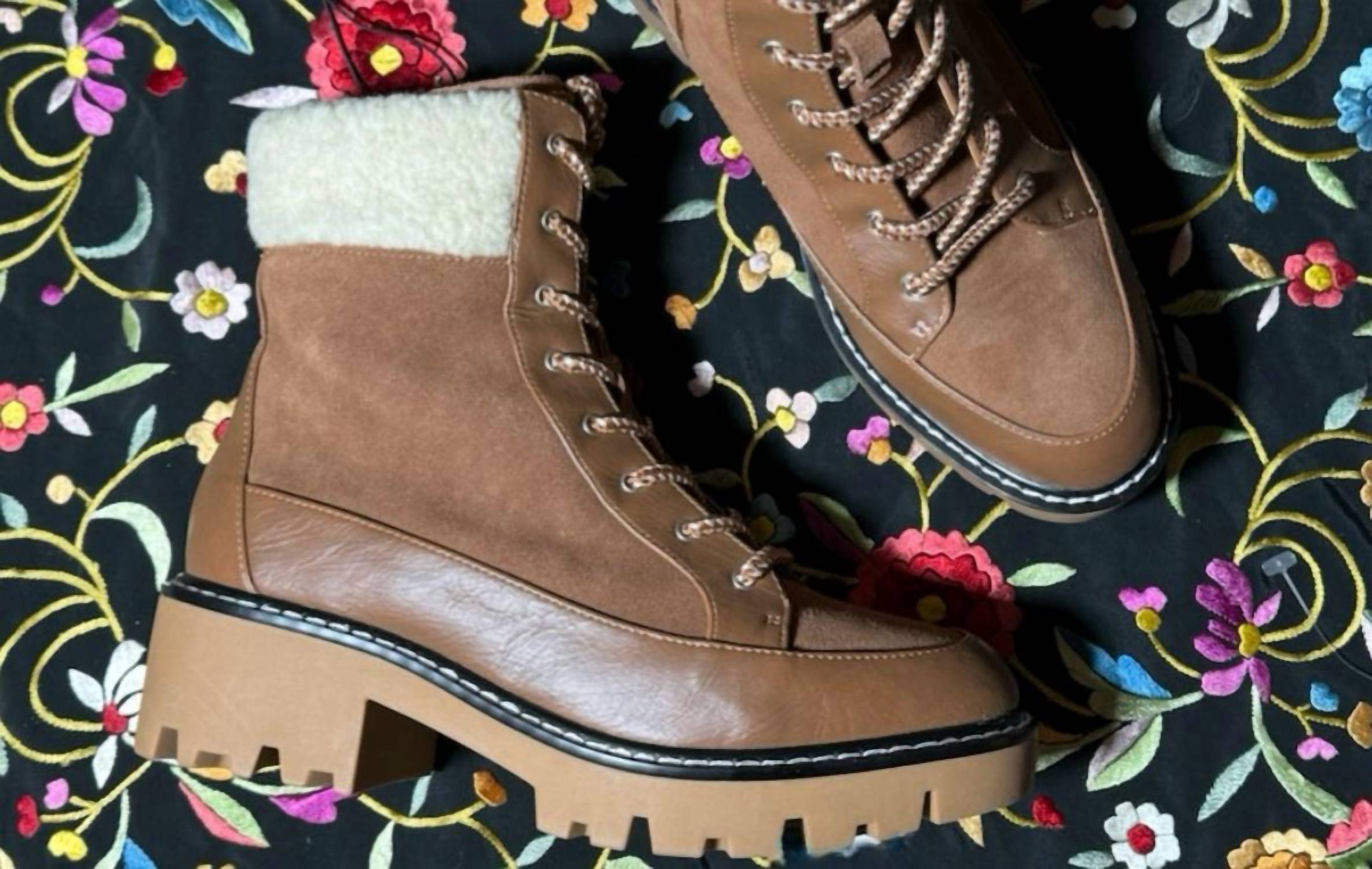 Say hello to the perfect, most versatile boot. The ankle height makes this style easily transition from day to night. Wear them with your favorite skinny jeans and tee for a more laid back look, or pair them with your favorite mini dress and jacket for a night out on the town. Enhance your winter collection with the Violet & Red Alexa Leather Lace Up Booties, a chic blend of style and functionality. These brown booties boast a high ankle height and round toe design with a secure lace-up closure, ideal for travel and casual outings. Crafted with a leather upper and tough rubber outsole, they feature a comfortable shearling lining and a low block heel measuring 1 1/4" to 2", ensuring durability and warmth for the winter season.