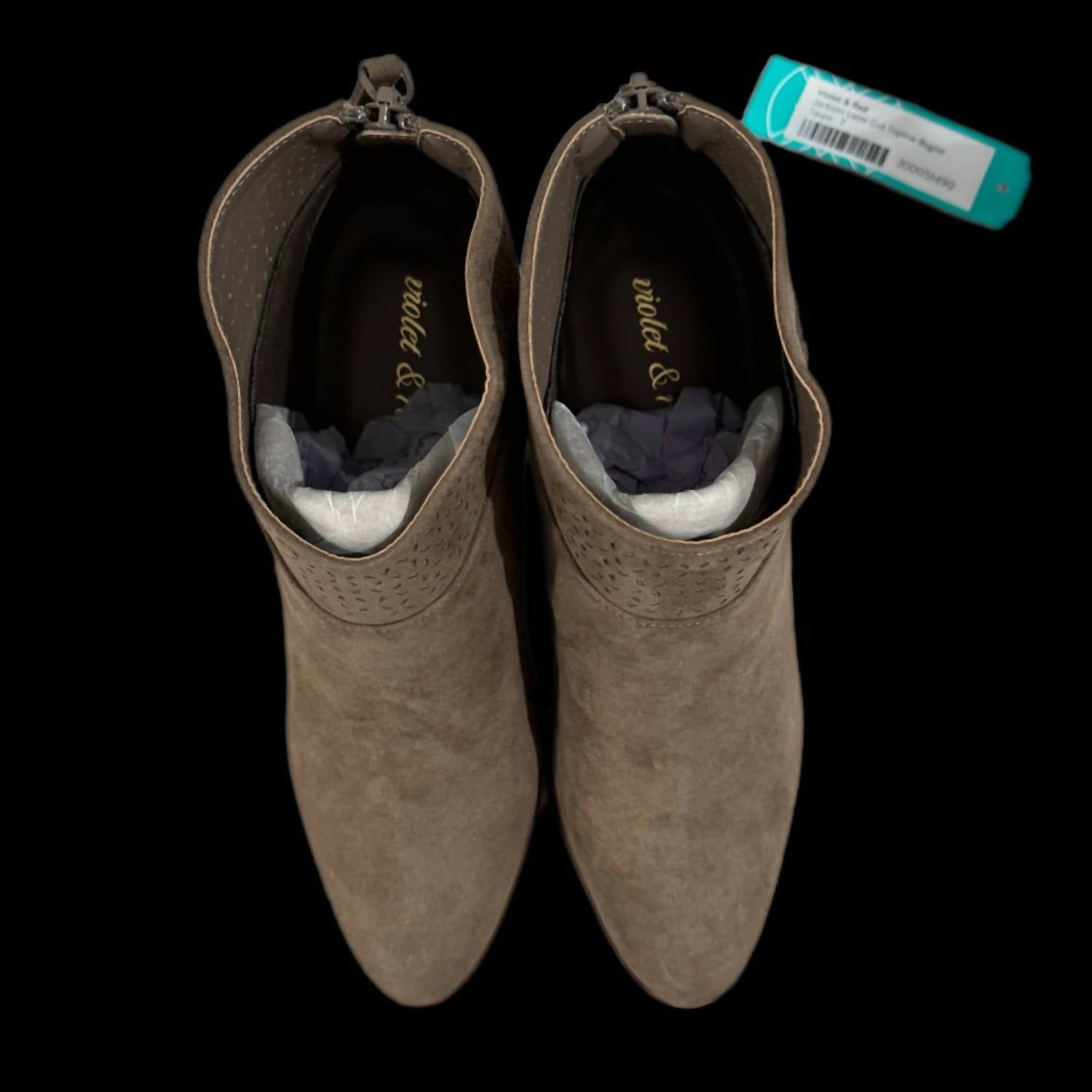 Say hello to the perfect, most versatile boot. The ankle height makes this style easily transition from day to night. Wear them with your favorite skinny jeans and tee for a more laid back look, or pair them with your favorite mini dress and jacket for a night out on the town. Introducing the Lazer Cut Topline Boho Chic Heeled Bootie by Violet & Red, perfect for adding a touch of elegance to your winter wardrobe. Crafted with vegan-friendly materials, these taupe ankle-length booties feature a faux suede upper with eye-catching cut-outs and a convenient zipper closure. The round toe and regular width ensure comfort, while the mid-height block heel provides arch support and stability, making them ideal for dinner parties or casual outings.
