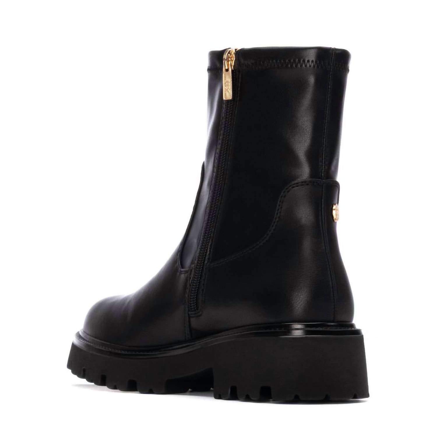 Elevate your footwear collection with the Women's Round Toe 144420 Booties by Xti, expertly crafted from black leather for a stylish finish. These ankle boots feature a chic round toe design and a chunky heel, perfect for fall fashion. Ideal for engagements or Thanksgiving celebrations, these booties capture the essence of quiet luxury. Wrapping comfort and elegance into one, Xti ensures you don’t compromise on quality with these stunning booties.