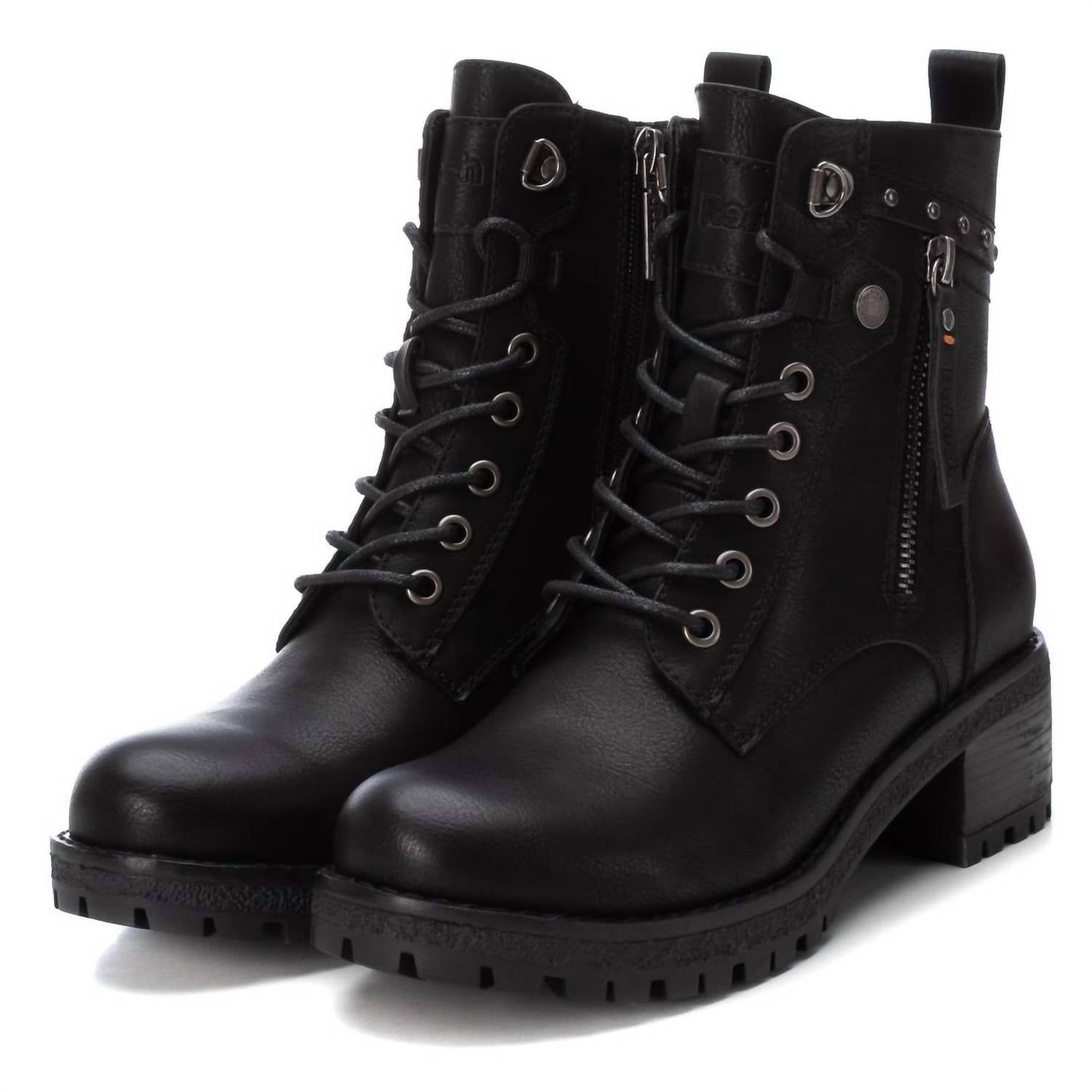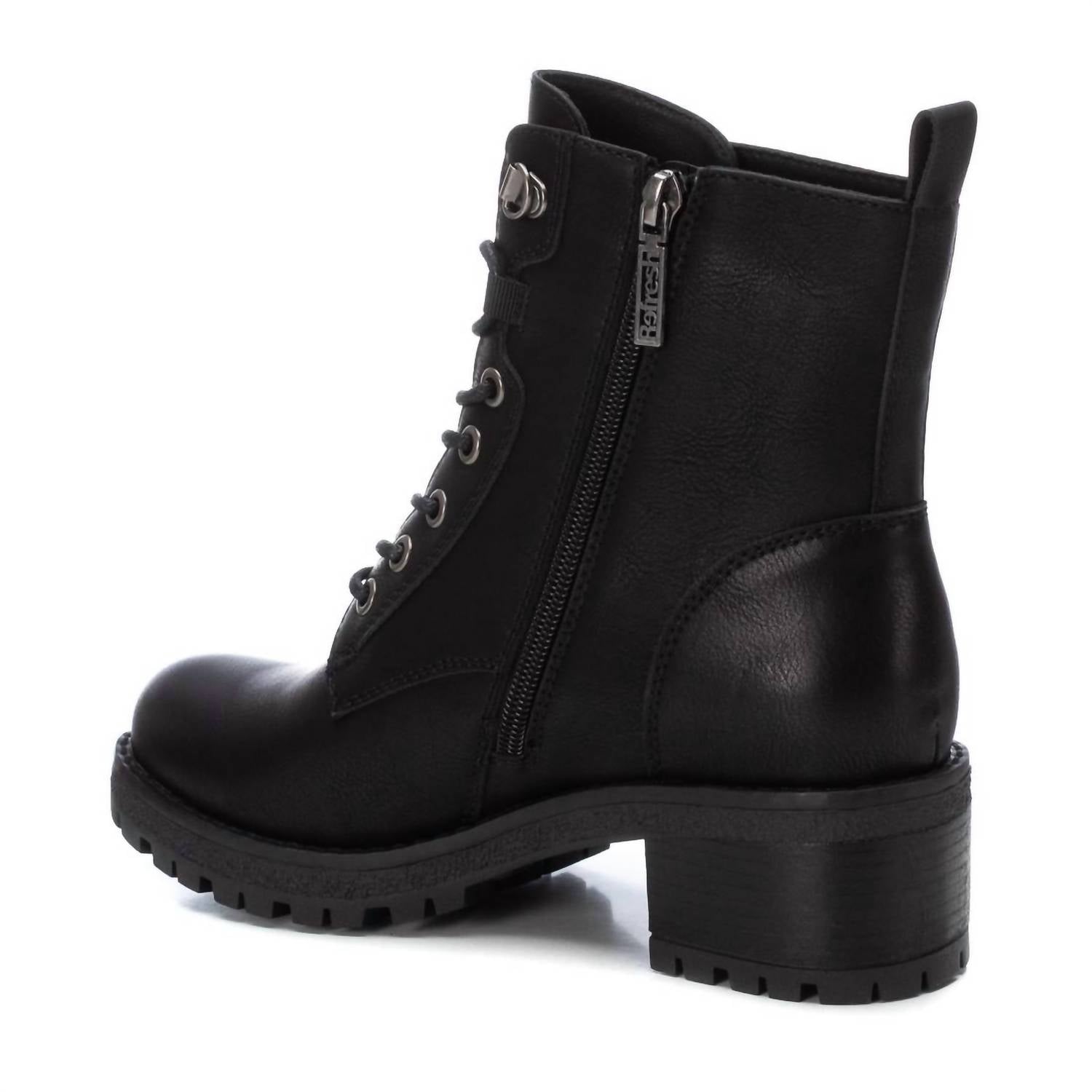 Say hello to the perfect, most versatile boot. The ankle height makes this style easily transition from day to night. Wear them with your favorite skinny jeans and tee for a more laid back look, or pair them with your favorite mini dress and jacket for a night out on the town. This Casual Bootie features faux leather, a side zipper, lace-up closure, and a 1.96-inch block heel, with decorative metallic details and a non-slip rubber sole for style and comfort.