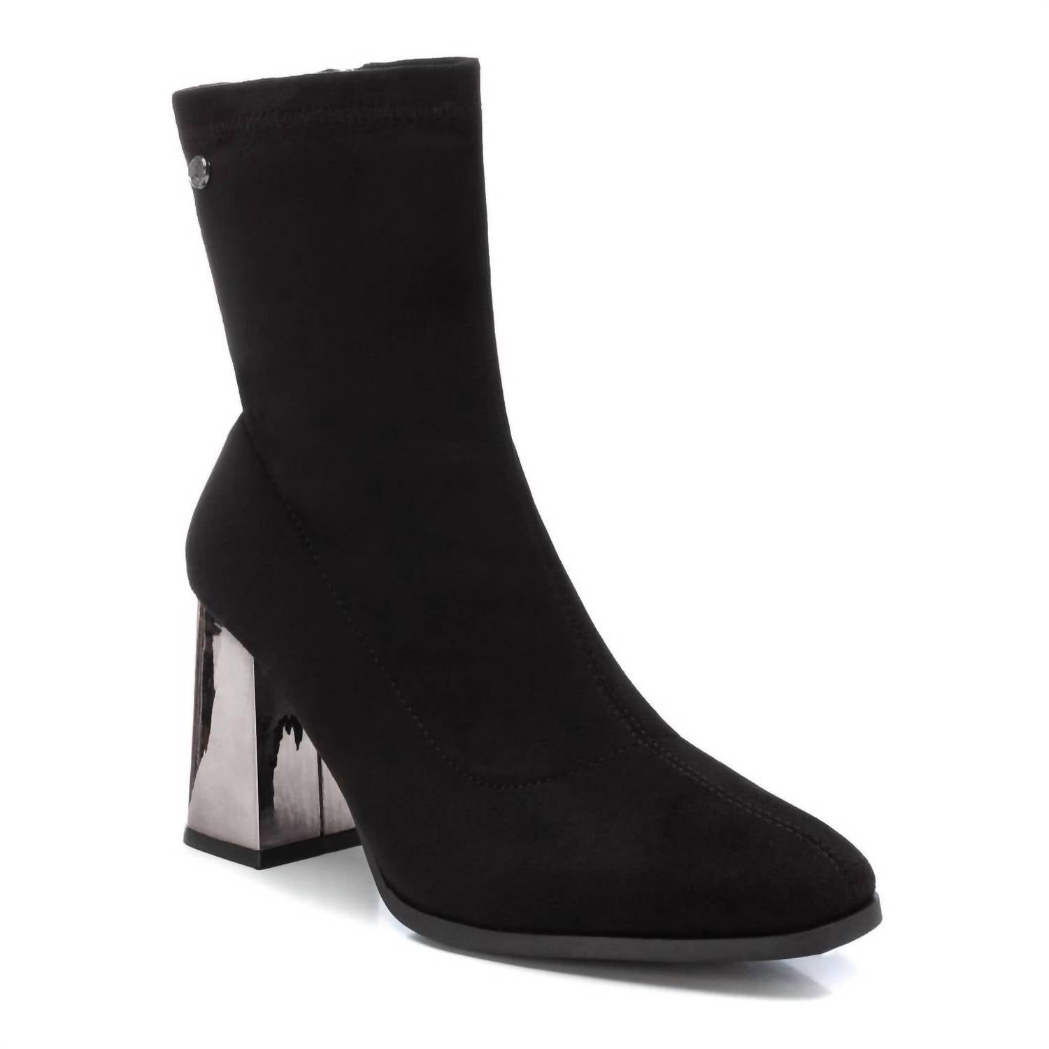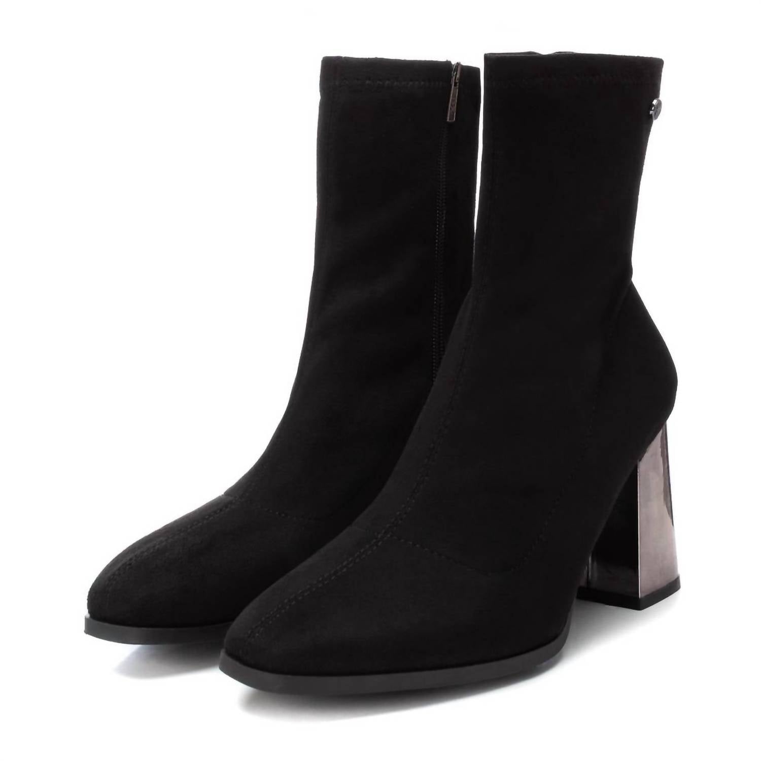 Say hello to the perfect, most versatile boot. The ankle height makes this style easily transition from day to night. Wear them with your favorite skinny jeans and tee for a more laid back look, or pair them with your favorite mini dress and jacket for a night out on the town. Elevate your wardrobe with the Women's Casual Suede Booties by Xti, featuring a 3.15-inch high block heel for a chic silhouette. These black suede booties boast an elegant and simple design, perfect for pairing with any outfit. The booties feature a side zipper closure and elastic shaft for a snug fit, along with a lightweight, durable non-slip rubber sole for comfort. Crafted from breathable materials with a padded insole, these high-quality booties offer style without compromising on comfort.