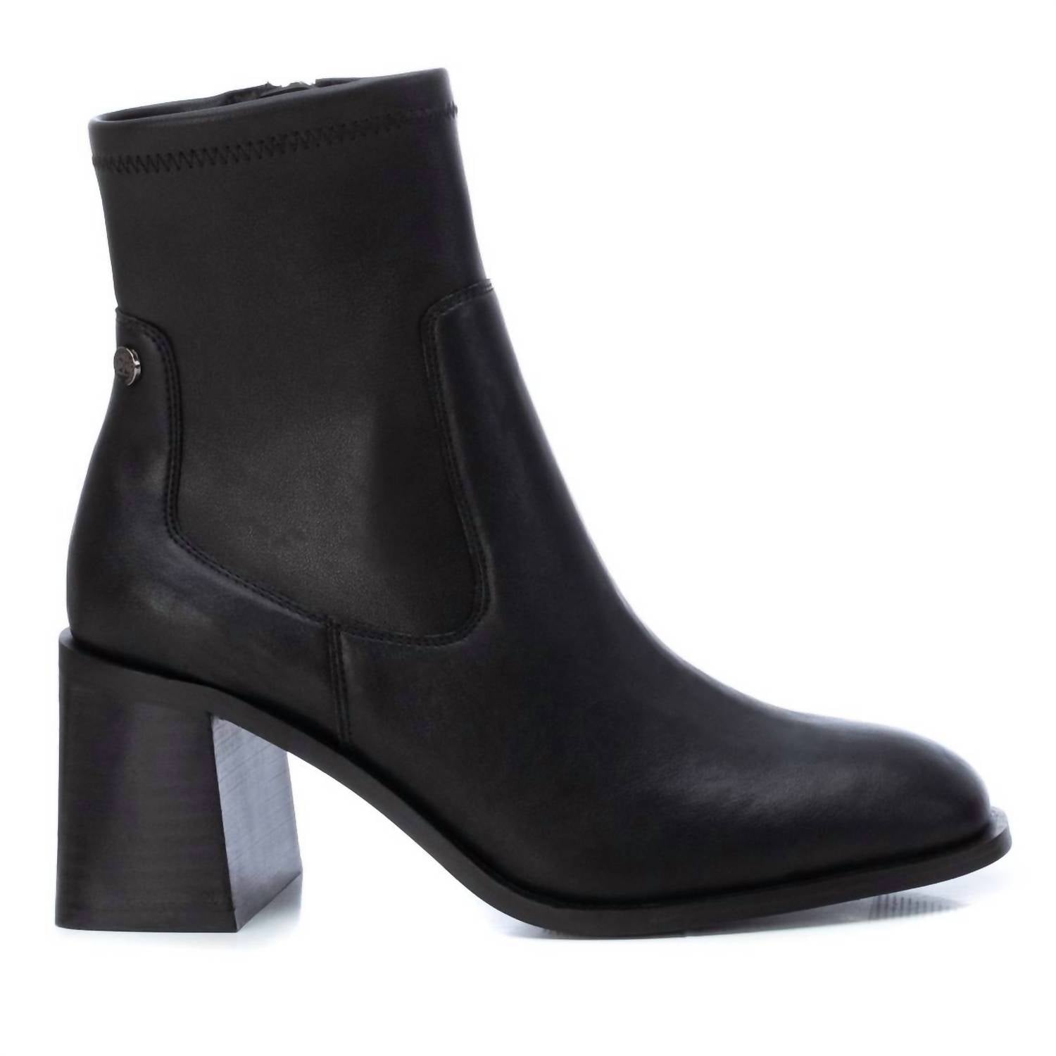 Say hello to the perfect, most versatile boot. The ankle height makes this style easily transition from day to night. Wear them with your favorite skinny jeans and tee for a more laid back look, or pair them with your favorite mini dress and jacket for a night out on the town. Made of material that mimics the skin, Chelsea type sock that fits the leg. Side zip. 7 cm wide heel with non -slip sole.