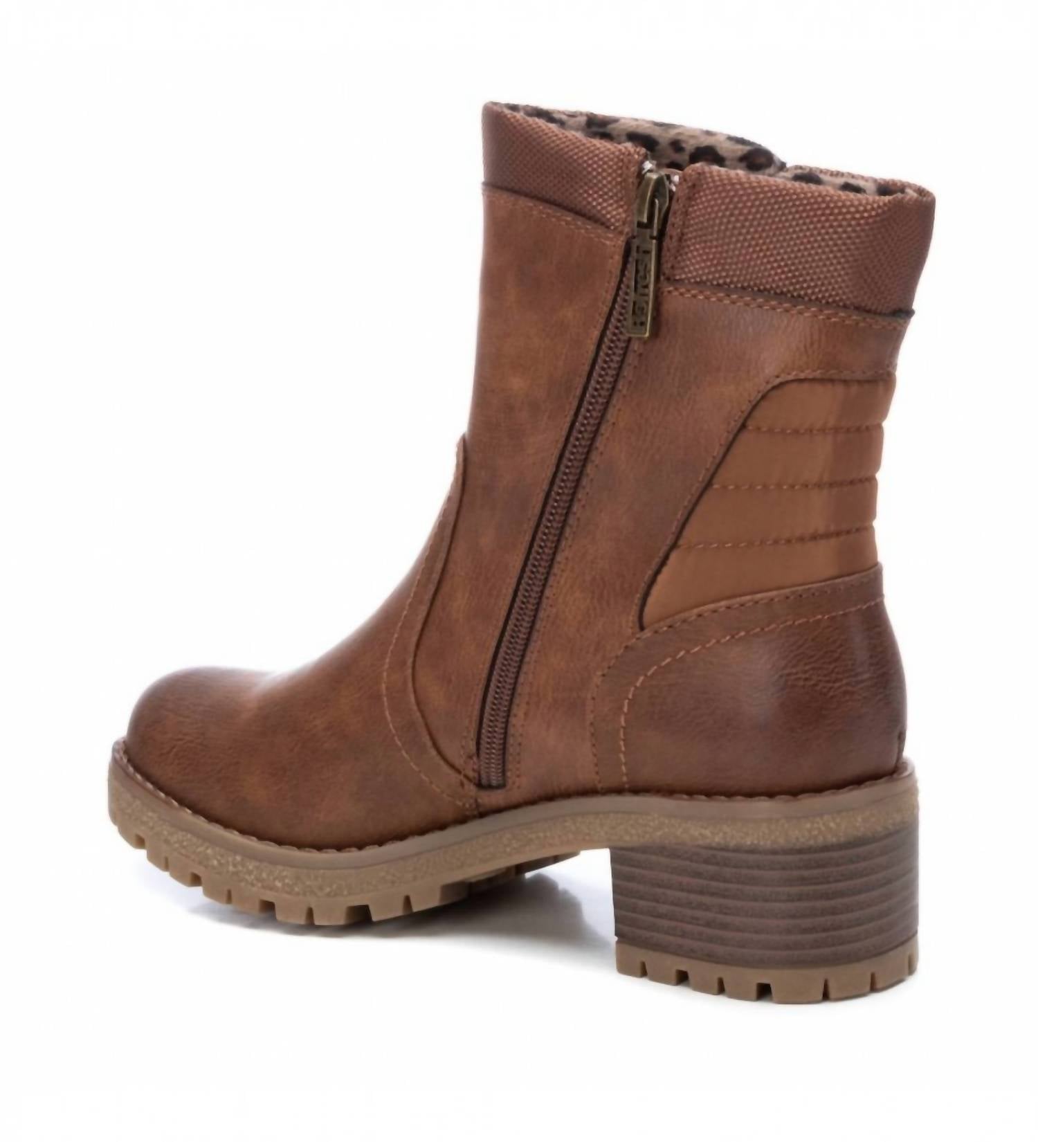 Say hello to the perfect, most versatile boot. The ankle height makes this style easily transition from day to night. Wear them with your favorite skinny jeans and tee for a more laid back look, or pair them with your favorite mini dress and jacket for a night out on the town. Made in material that imitates leather combined with textile. Side zipper closure. Decorative zipper on the outer side. Lightweight non-slip rubber sole. 1.96 in heel.