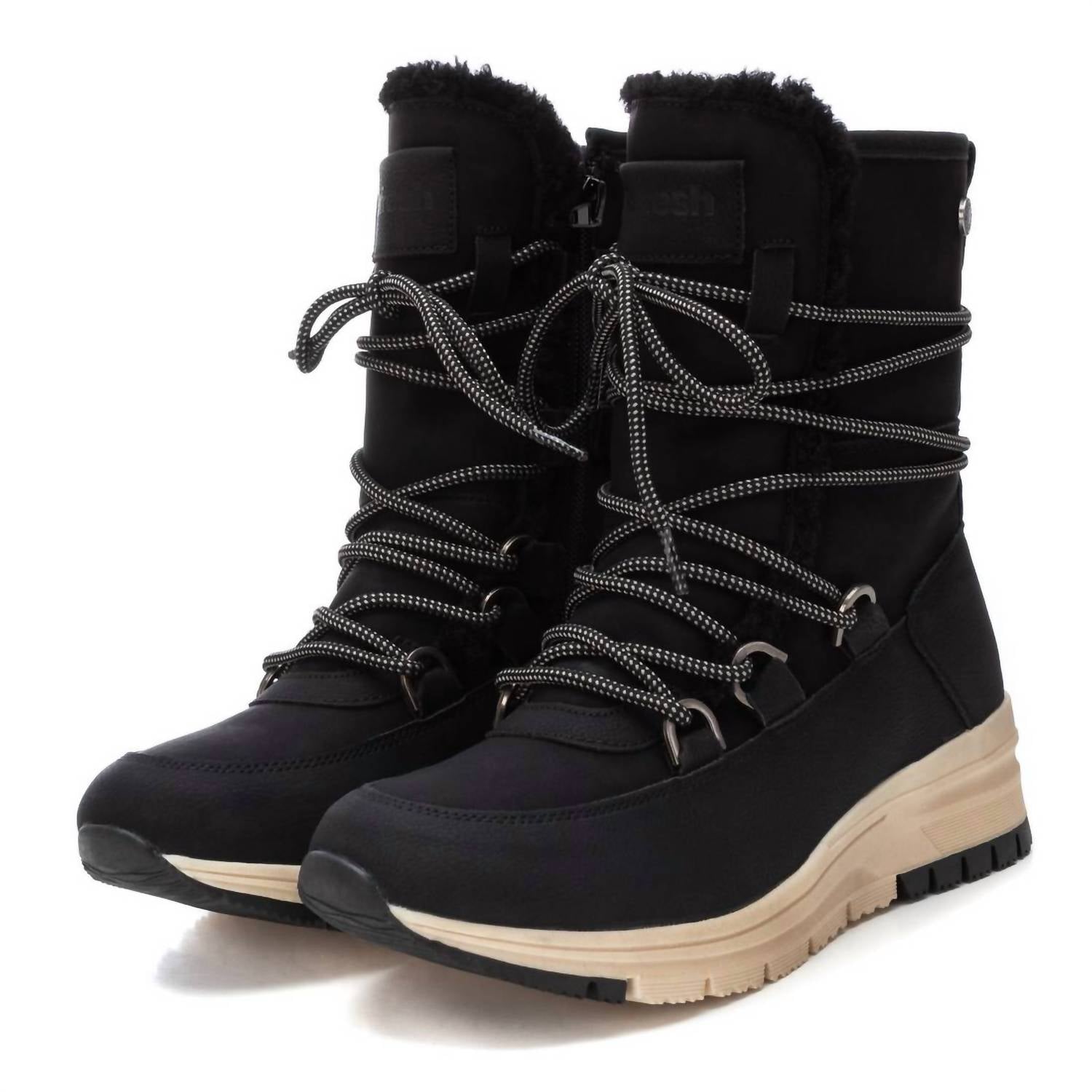 This pair of winter booties features a side zipper, lace-up detailing, and a padded insole for comfort. Made with faux leather and a non-slip rubber sole, they offer stylish durability for everyday wear.