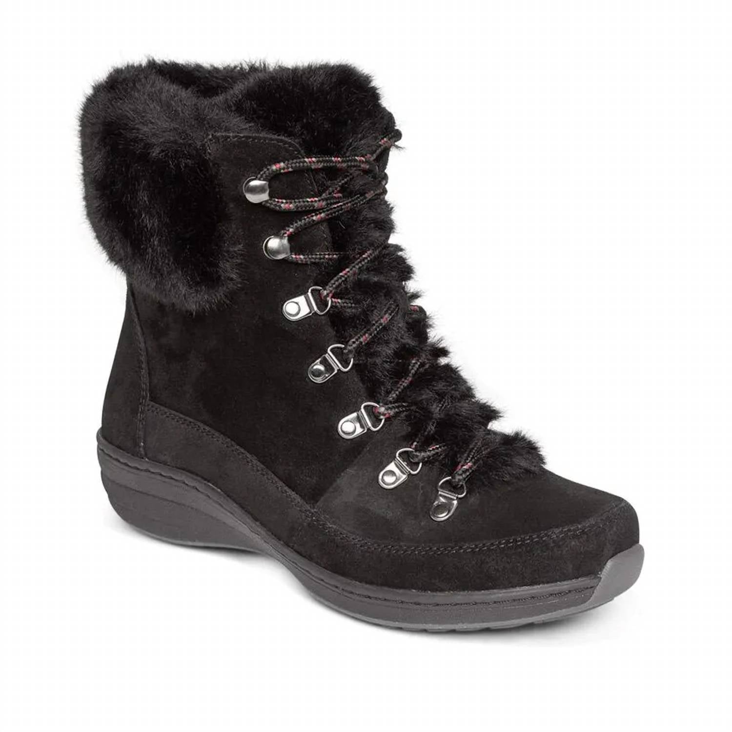 Upgrade your shoe game with these stylish lace-up boots, designed to merge sophistication and comfort. You'll be reaching for these shoes season after season. Whether you're hiking in the mountains or running errands, the faux fur lining, waterproof upper materials, arch support and slip resistant outsole will keep you warm and supported. Mid calf height ankle boot Upper Material: Waterproof construction with Genuine Leather and Faux Fur Padded collar for extra comfort Slip resistant outsole Lining Material: Neoprene to stretch and insulate with plush faux fur Warmth Rating: Up to -20 C/ -4 F Removable Insole Heel Height: 1.125"