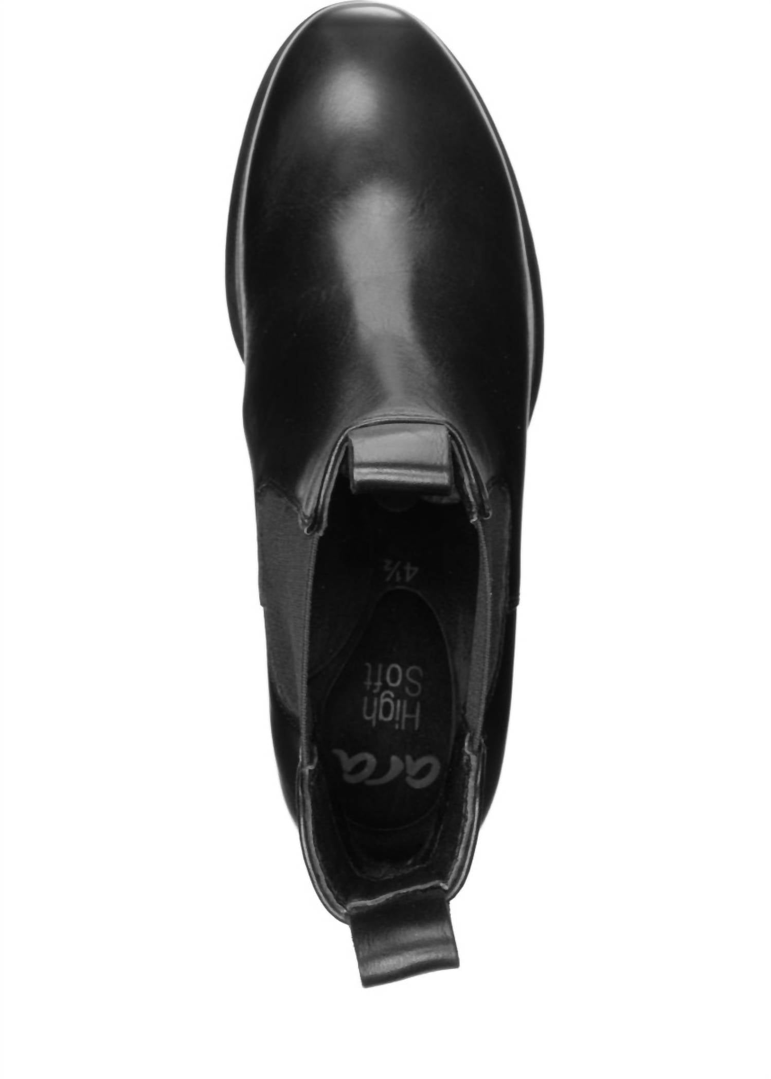 Step into elegance with the Women's Cascade Ankle Boot by Ara, featuring a minimalist design in sophisticated black leather. This stylish boot comes with a round toe and a comfortable wedge heel that stands at 1.75 inches, making it ideal for travel and everyday wear. The lightweight and shock-absorbent sole guarantees all-day comfort, while the medium width accommodates most foot shapes. Embrace fall with a versatile piece that seamlessly blends style and practicality.