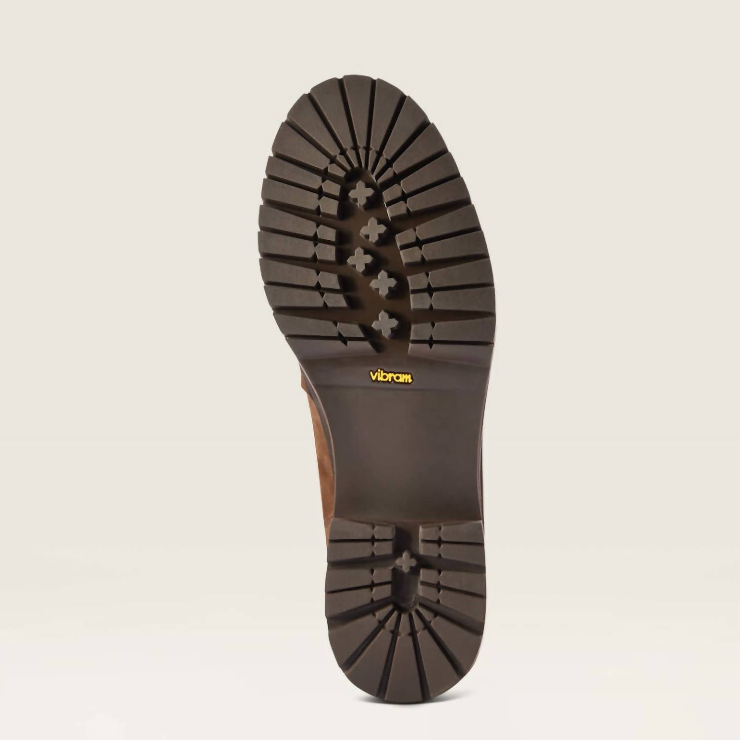 Upgrade your shoe game with these classic heeled boots, designed to merge sophistication and style. Comfortable enough for long days or a night out on the town. Elevate your country style with the ARIAT Women's Leighton Waterproof Bootie, crafted from 100% leather in a rich brown hue. This heeled boot features a chic round toe, a comfortable 1.5" chunky heel, and a 5.5" upper height, making it ideal for both style and practicality. Designed with a full back zip and finished with an elegant plaid lining, it seamlessly combines Western elegance with modern waterproof technology. The removable All Day Cushioning insole ensures lasting comfort, while the Vibram® sole delivers superior grip and durability.