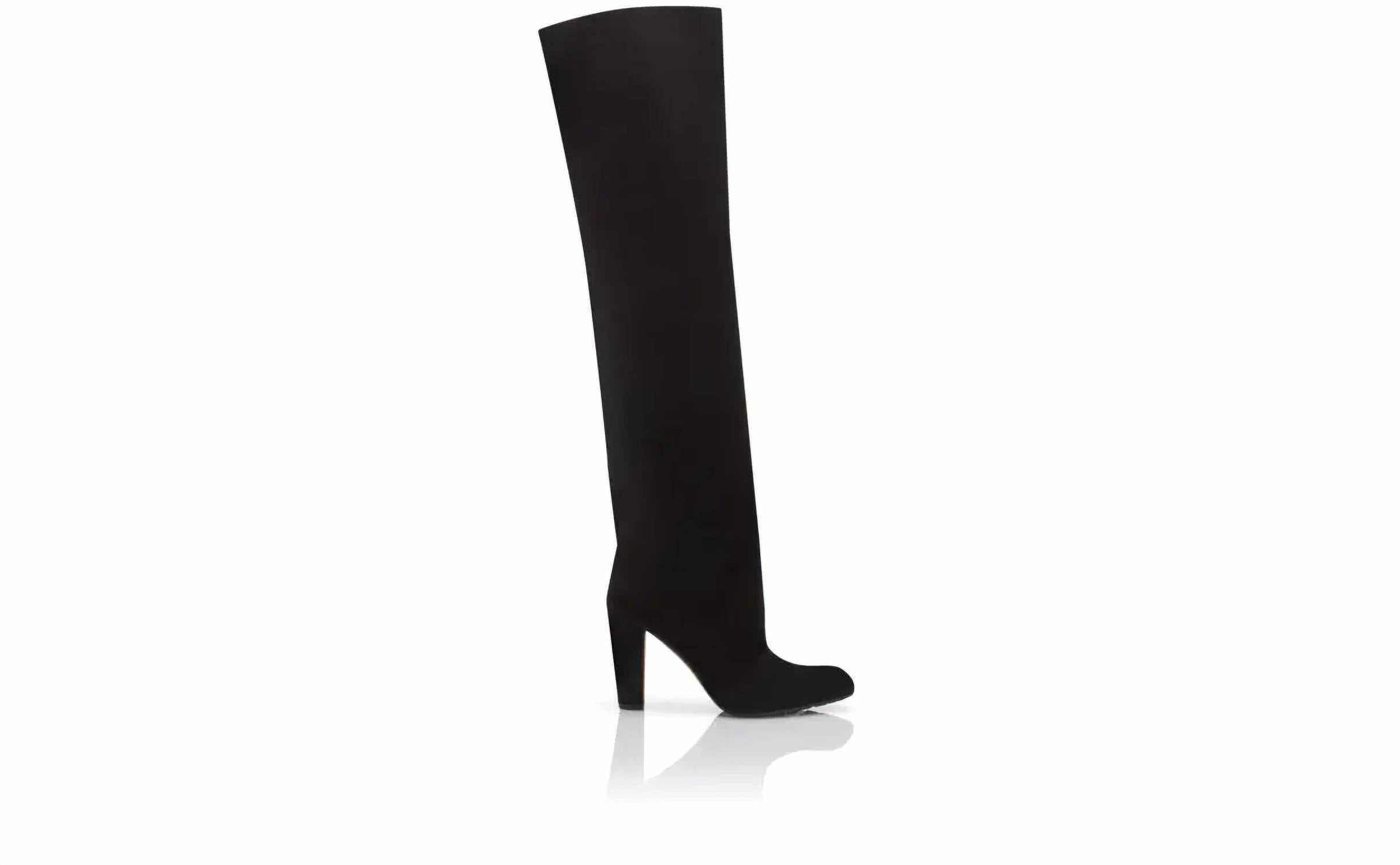 A stylish boot with a comfortable fit and the perfect amount of height. These classic boots are the perfect addition to any outfit and can be worn season after season. Step into timeless elegance with the Pre-loved Gardahi Suede Knee High Boots by Manolo Blahnik, perfect for an evening event. Crafted from exquisite black suede, these knee-high boots feature a chic pointed toe and a sophisticated block heel measuring 4 inches. Made in Italy, they are a stylish choice for fall, particularly fitting for New Year's Eve celebrations. Embrace the 90s fashion trend with a modern twist in this high-heeled silhouette designed for sophistication and allure. Condition: Excellent. Brand new and unused, but missing original box and dust bag.