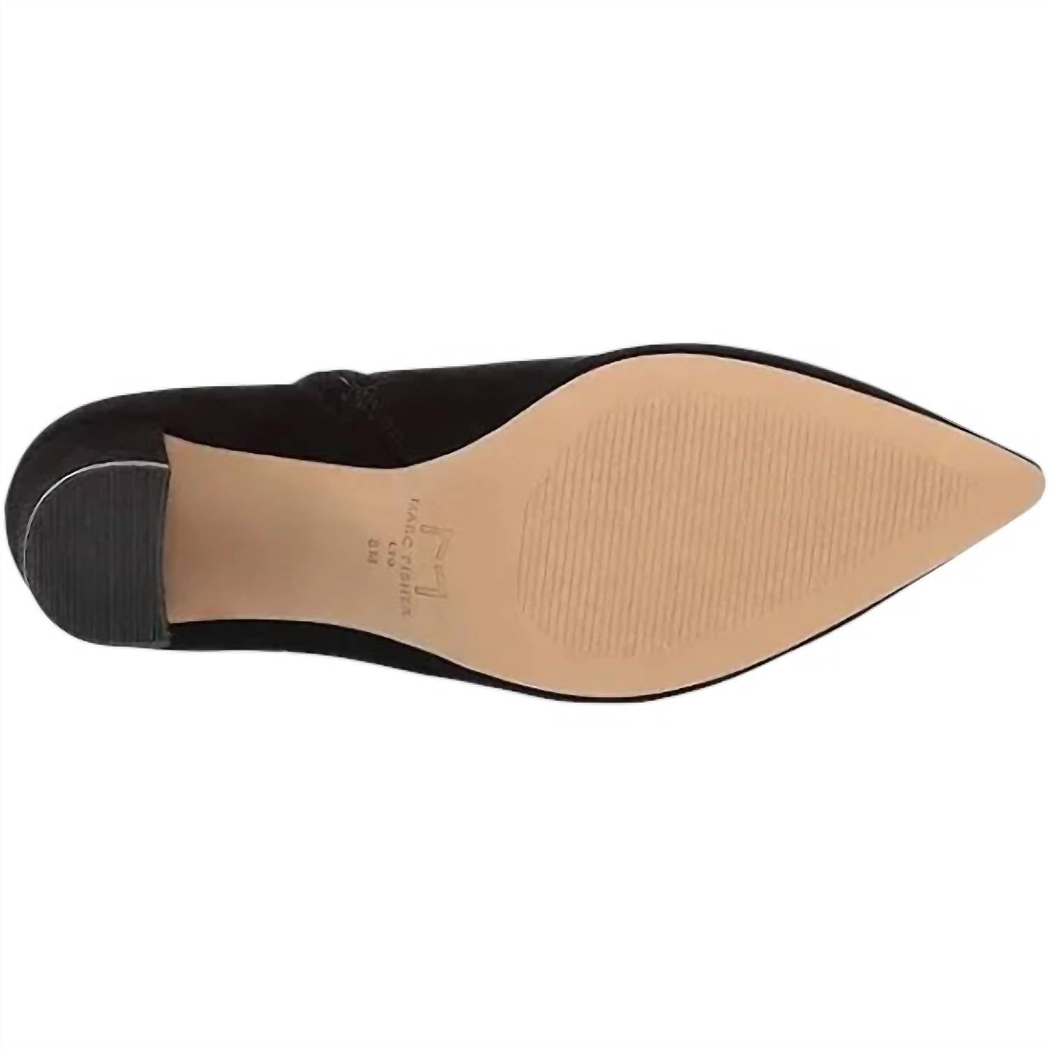Say hello to the perfect, most versatile boot. The ankle height makes this style easily transition from day to night. Wear them with your favorite skinny jeans and tee for a more laid back look, or pair them with your favorite mini dress and jacket for a night out on the town. Step into elegance with the Women's Ulani Suede Ankle Boots by MARC FISHER, designed in classic black for a minimalist fall style. These boots feature an elongated upper with a pointed toe and a functional inner zipper closure, ensuring both style and ease of wear. Crafted from premium suede, they boast a cushioned footbed for comfort and a stylish block heel measuring 3.25 inches in height, complemented by a 5-inch shaft. Ideal for evening events or a chic New Year's Eve look, these boots are a sophisticated addition to any wardrobe.