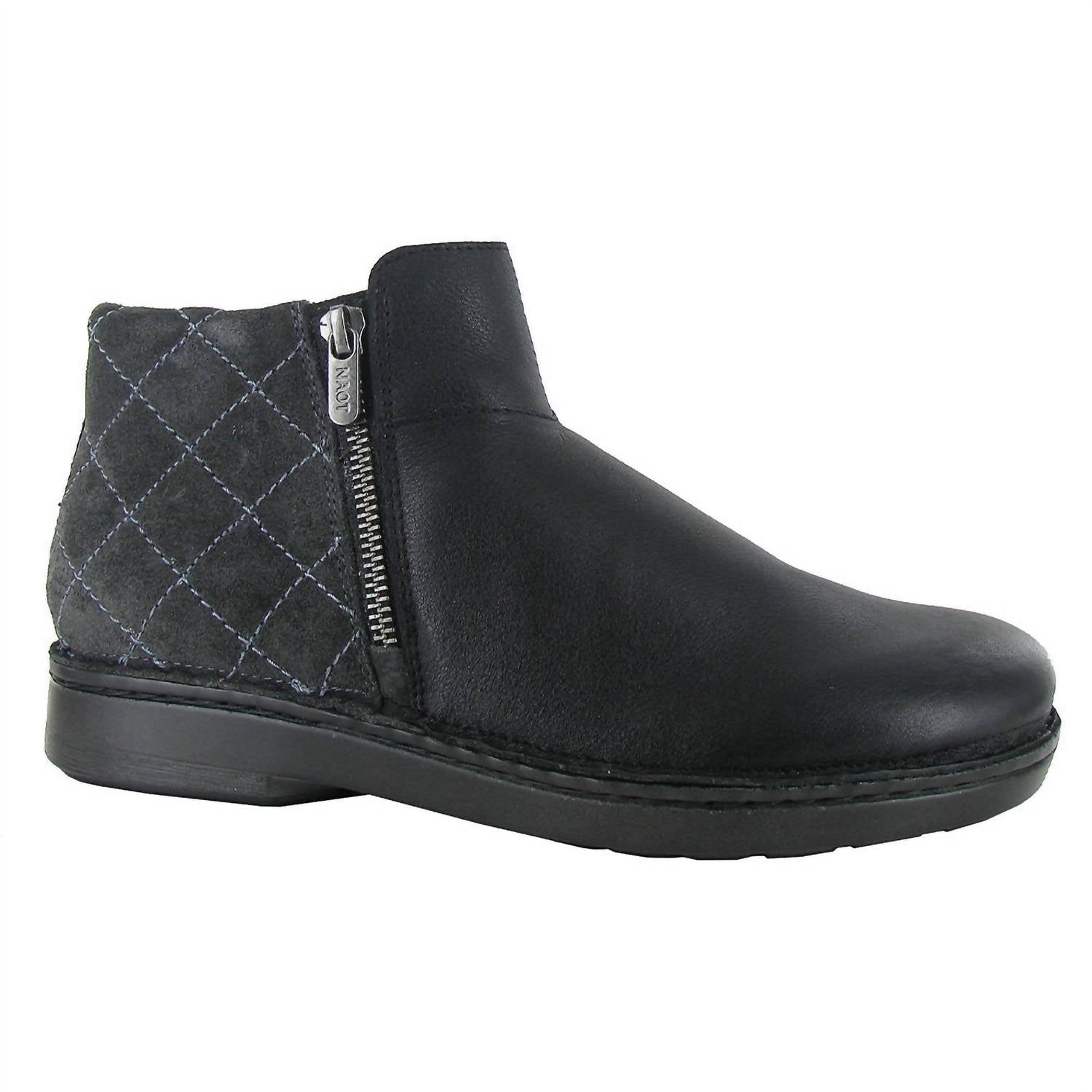 Say hello to the perfect, most versatile boot. The ankle height makes this style easily transition from day to night. Wear them with your favorite skinny jeans and tee for a more laid back look, or pair them with your favorite mini dress and jacket for a night out on the town. Step into style crafted from a luxurious combination of soft black leather and midnight suede. Features an anatomic cork and latex footbed. With quilted details and zipper accents. Round-toe booties have a 1.25-inch block heel. Slip-resistant, orthotic-friendly boots with your favorite Merino Wool socks for added warmth this fall-winter season.