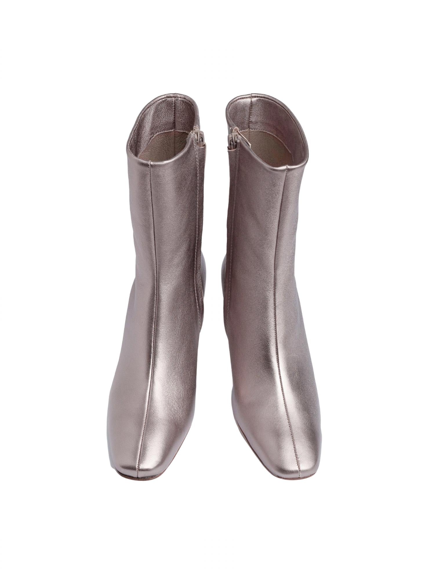 Step out in confidence and showcase your impeccable taste with these fashionable and versatile boots. Their classic style will have you reaching for these boots season after season.Lambskin upper. Metallic finish Goatskin lining. Stiletto heel. Heel height: 2.5” – 6.5 cm. Leather sole with anti-slip TPU nibs. Comes with dust bag. Made in Spain.