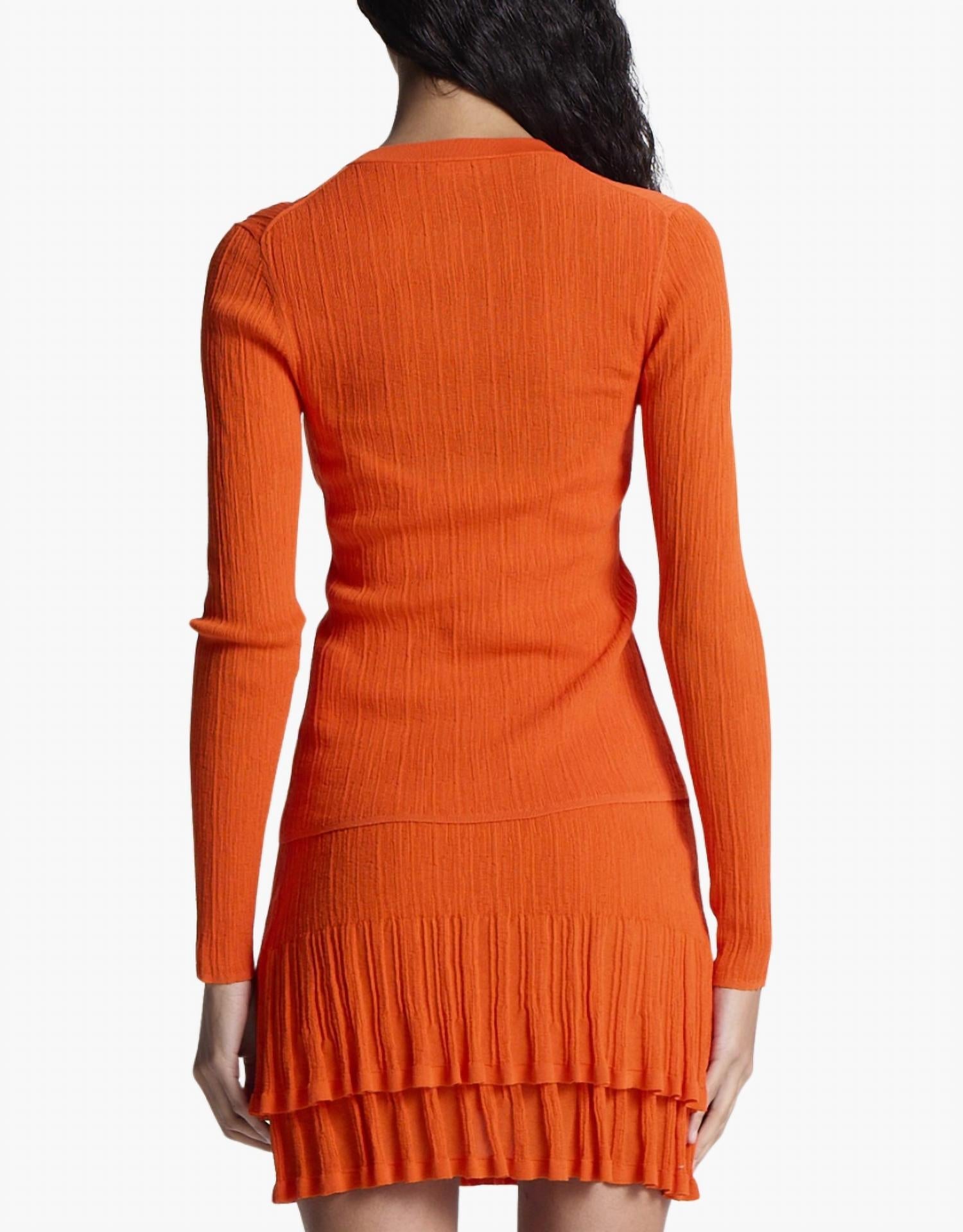 Throw this adorable cardigan over any cami or tank top. Elevate your wardrobe with the Fisher Cardigan by A.L.C., a textured masterpiece in vibrant poppy. Featuring long sleeves and a crewneck, this cotton blend cardigan offers style and comfort. Composition: 78% cotton, 22% nylon. Closure: Button closure. Dry clean.