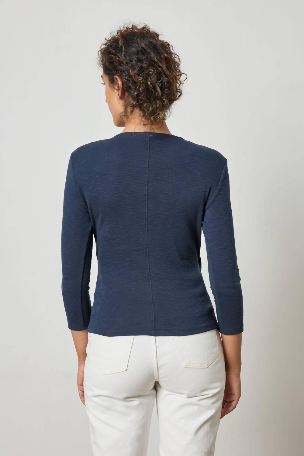 Throw this adorable cardigan over any cami or tank top. Elevate your wardrobe with the 3/4 Sleeve Surplice PA2904 by Lilla P in a charming camellia hue. This top boasts three-quarter sleeves and is crafted from 100% cotton for breathable comfort. The surplice wrap-front design accentuates a flattering V-neckline, offering a sleek silhouette at a length of 23 inches for size Medium. Closure: Pull on style. Care: Machine wash for easy maintenance. Perfect for vacation or streetwear ensembles.