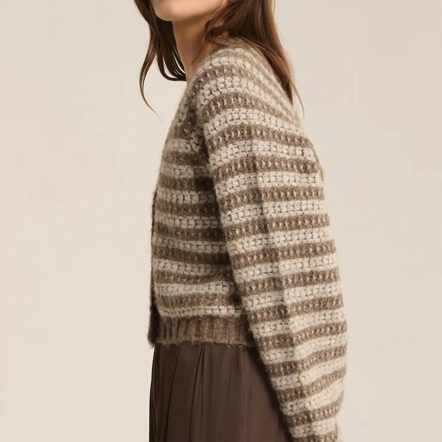 Throw this adorable cardigan over any cami or tank top. Step out in style with the Este Cardigan by Z Supply, an elegant piece in a stunning biscuit hue. Featuring long sleeves and a classic v-neck, this cardigan combines practicality and style. It's crafted from cozy tinsel yarns comprising 85% polyester, 14% acrylic, and 1% metallic, ensuring both comfort and a touch of glamour. Closure is a chic button front, and for care, simply hand wash as needed.
