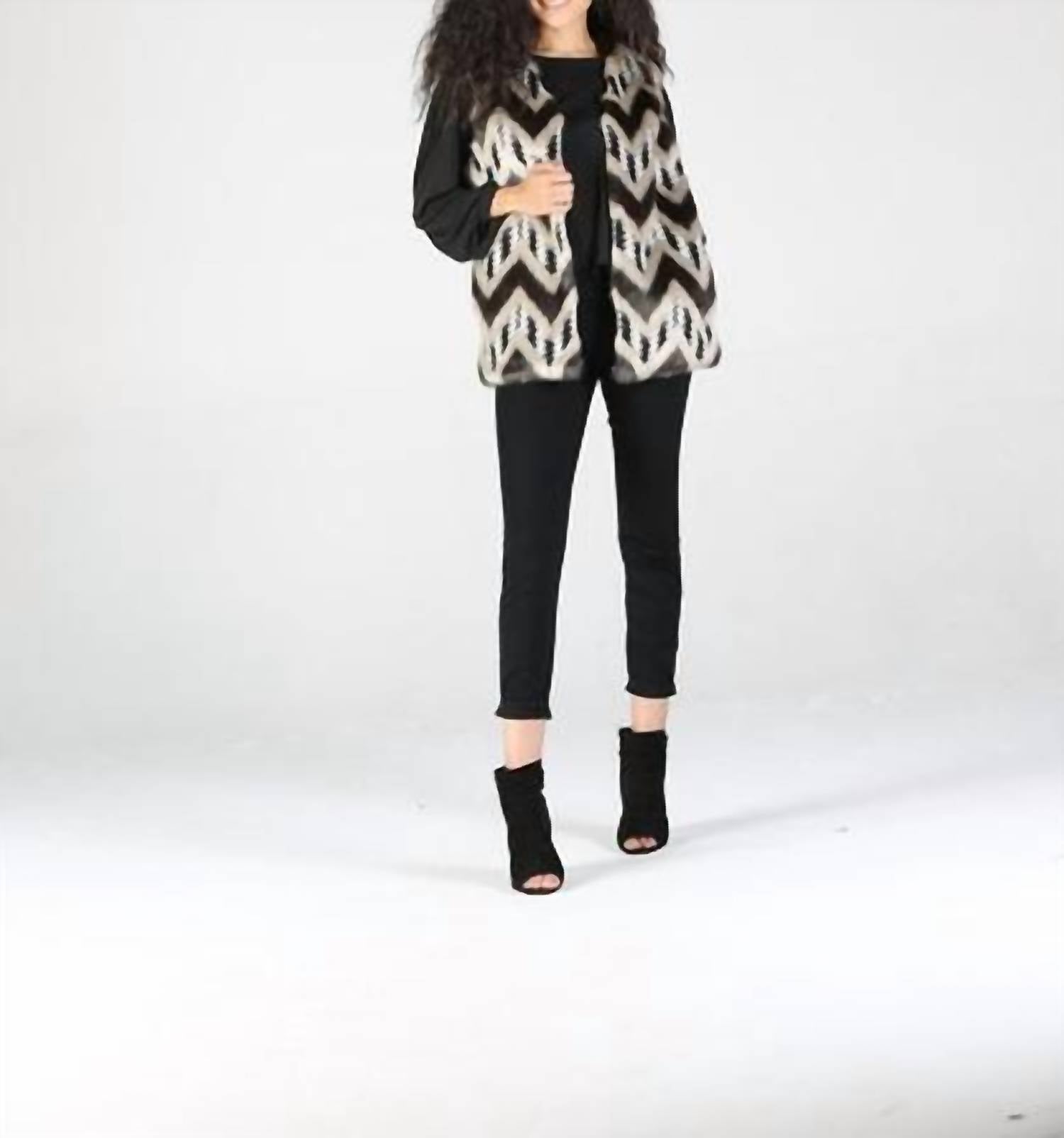 Throw this vest over an all black outfit for a perfectly polished look. Explore your style with the Pattern Vest by ANGIE, featuring a bold geometric print in sophisticated black and brown hues. This sleeveless vest offers versatility with its pull-on closure, making it a perfect layering piece. Crafted with attention to detail, this women's vest lacks lining, adding to its lightweight nature.