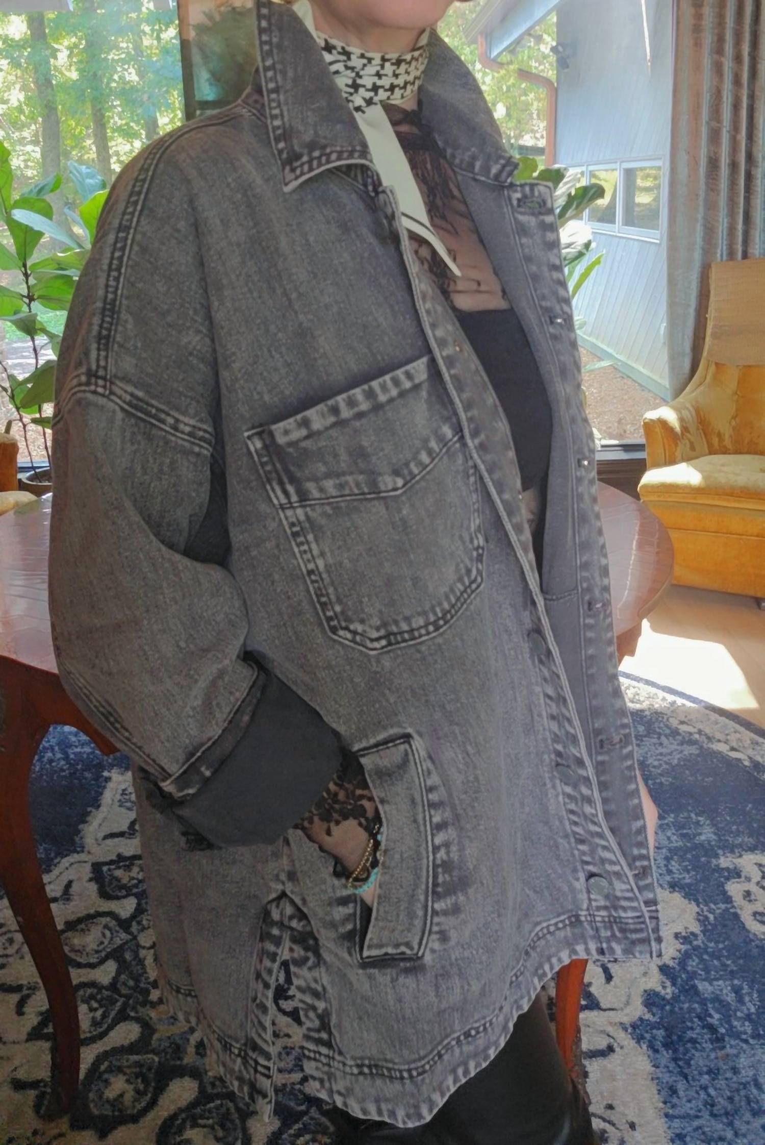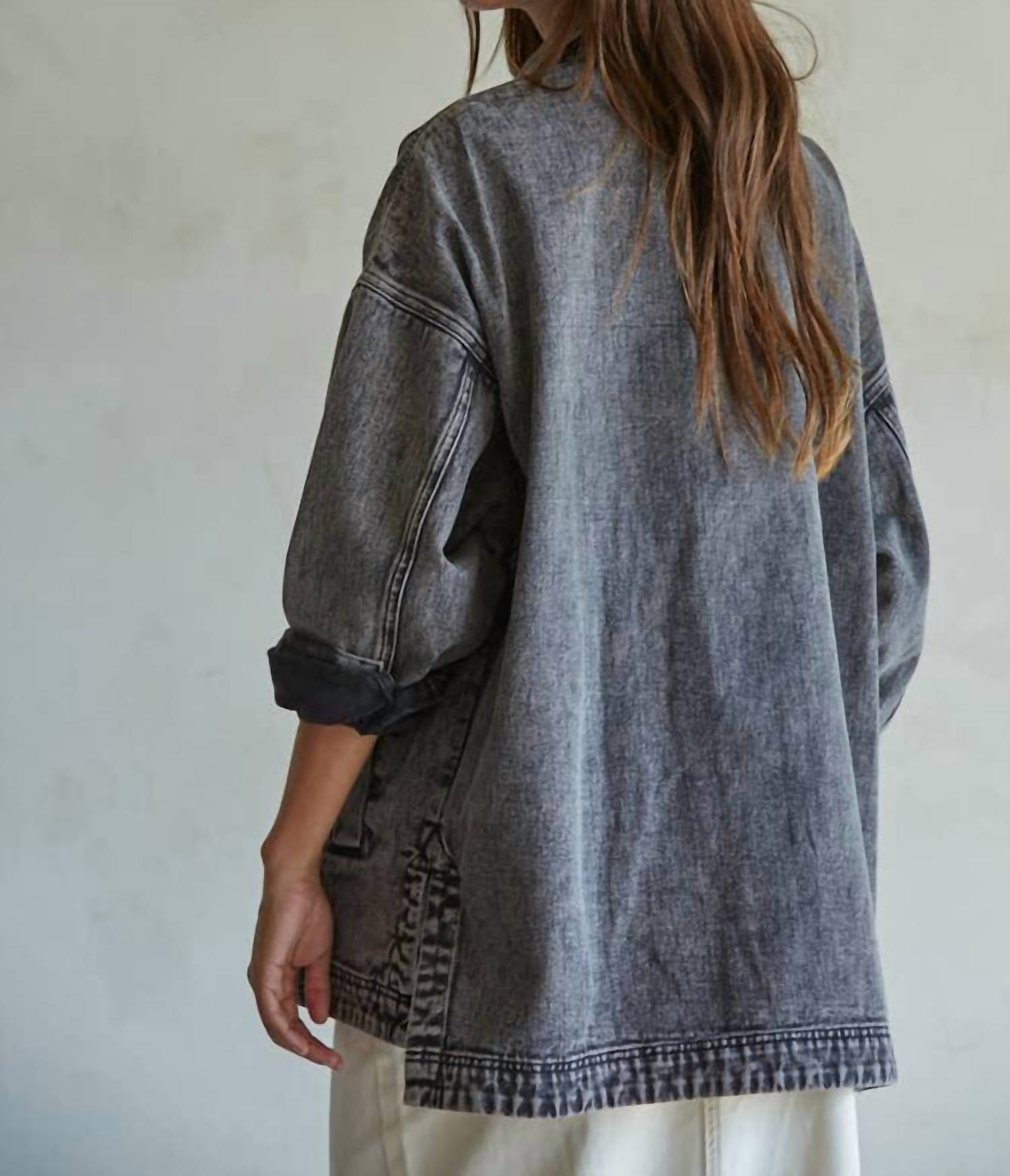 Throw this adorable jacket over just about anything for an effortlessly stylish look. Introducing the Woven Washed Denim Jacket by By Together, designed in a chic washed black for the perfect lived-in feel. This solid, long-sleeve cotton jacket boasts an oversized, relaxed fit, ideal for effortless layering. It features a classic button closure, a collared neckline, and offers function with double-chested flap pockets and side seam pockets. The versatile cuffs allow you to roll up or wear down the sleeves, catering to your seasonal style needs.