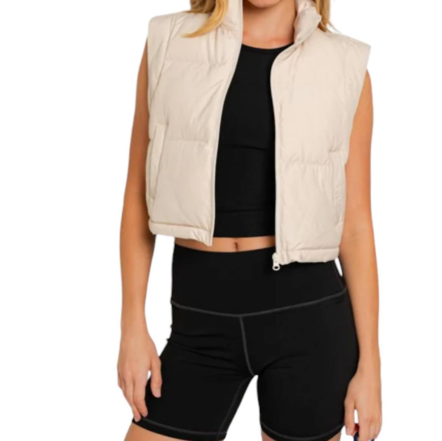 That extra layering piece you didn't know you needed! Cropped style with side pockets for convenience. Unlined and woven for a sleek, non-sheer look. 100% Polyester for a lightweight feel.