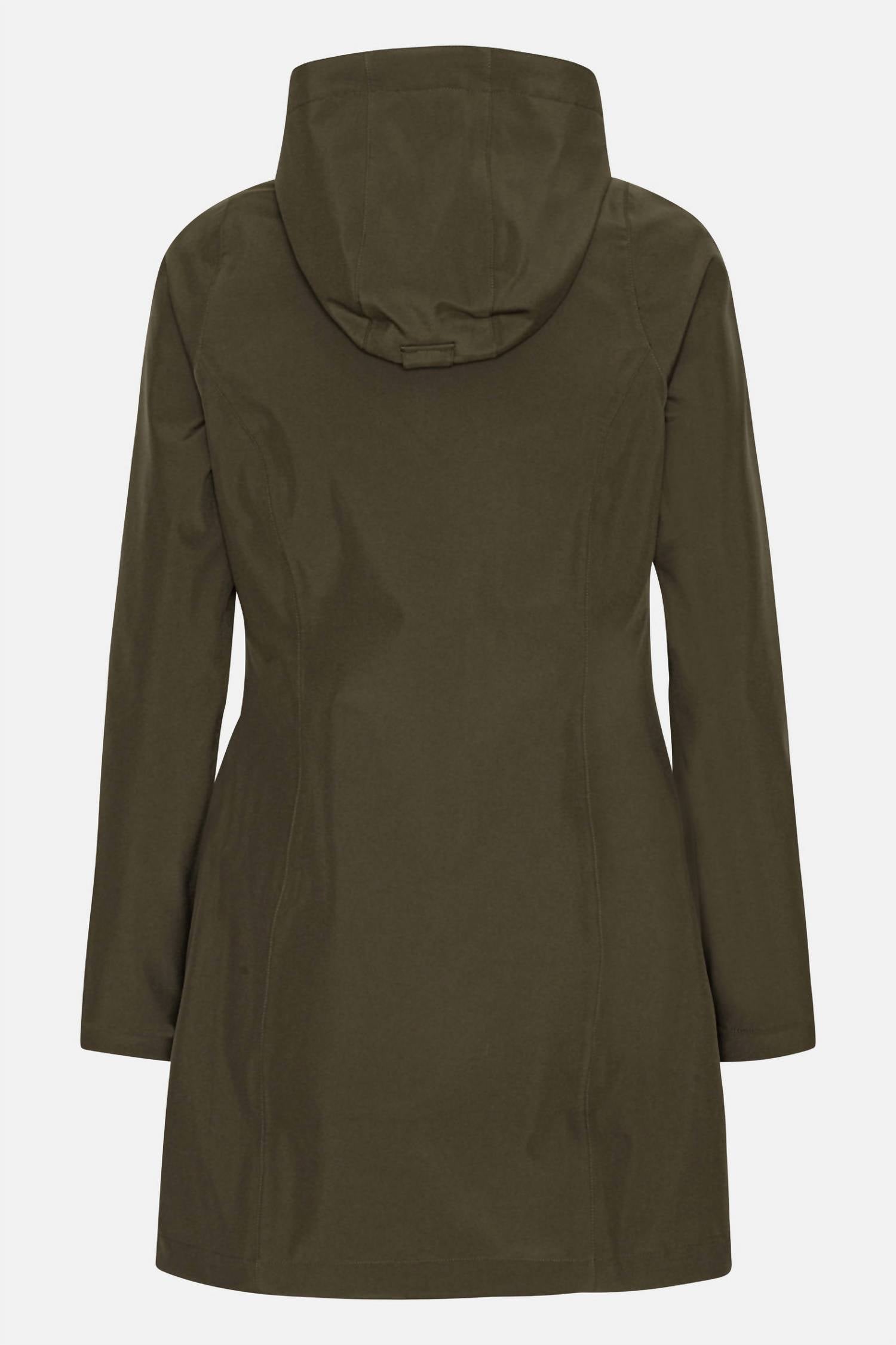 A casual yet cool jacket that every closset needs. Introducing the Daybreak 01 Rain Jacket by Ilse Jacobsen, an essential piece for your active wardrobe in a stylish Army Green. This women's jacket features long sleeves and is made from durable polyester, designed with a zip closure for convenience. With taped seams and Ecorepel® innovation, it boasts a 5000 mm waterproof rating, ensuring you stay dry during your outdoor adventures. Embrace the outdoors with this solid-patterned, functional jacket, complete with pockets and a practical hooded neckline.