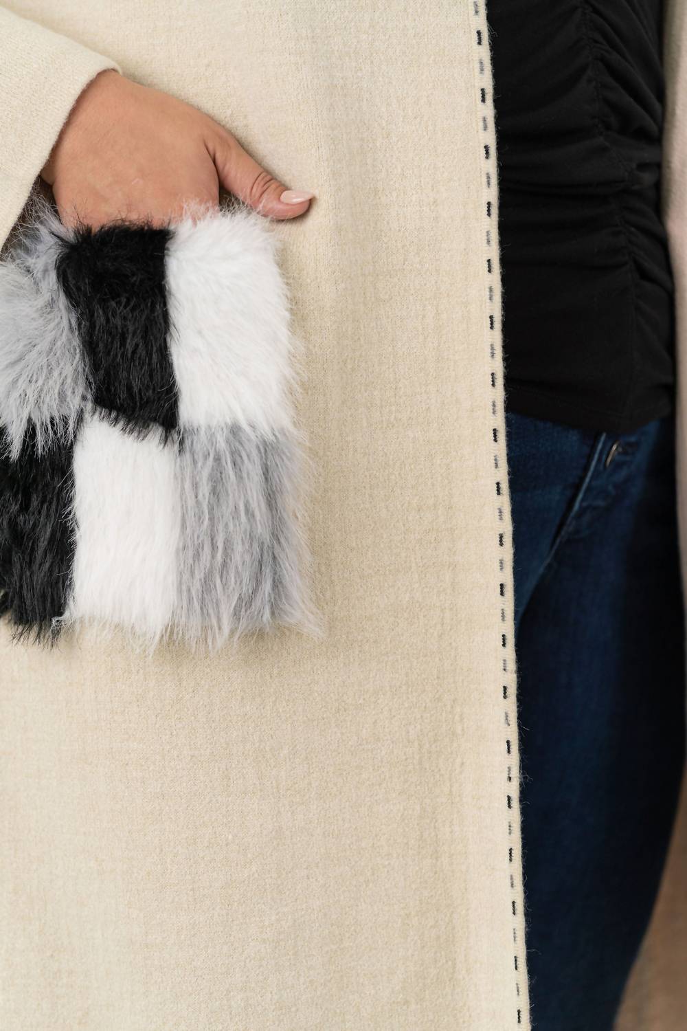 Introducing the Stella Hooded Coat by Joh, a minimalist masterpiece perfect for Thanksgiving and winter dinners. Made from solid beige faux fur, this women’s trench coat offers long sleeves, featuring faux fur-detailed pockets for added warmth and style. With a hooded neckline and a practical pull-on closure, this coat is fully lined for comfort. Care for it is simple, with machine wash and tumble dry instructions ensuring easy maintenance.