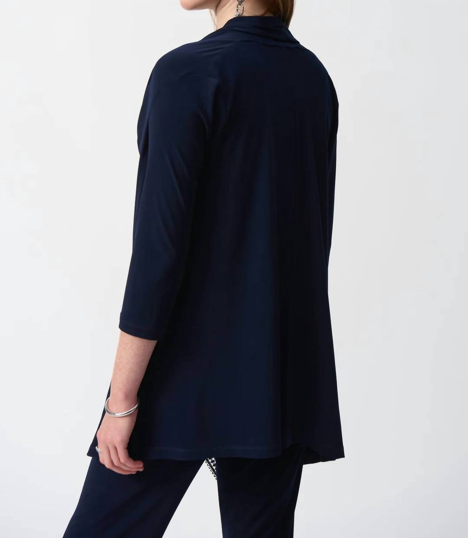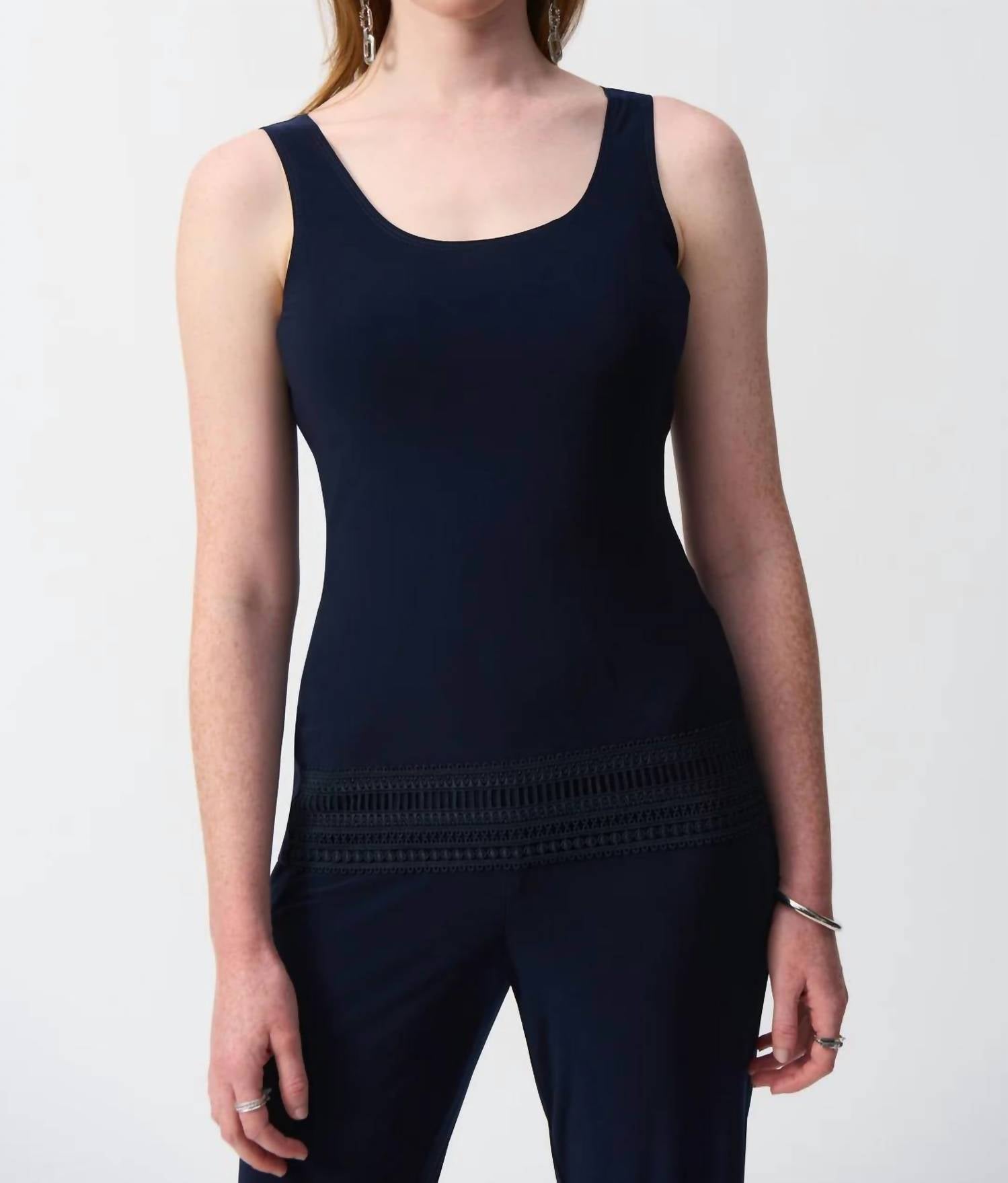A jacket so versatile you can literally wear it with anything. Discover the Joseph Ribkoff Lace Trim Quarter Sleeves Twin Set Jacket, a chic addition to any wardrobe in stunning Midnight Blue. This two-piece set includes a scoopneck cami with elegant guipure lace trim and a textured jacket with flared silhouette and three-quarter sleeves. Made from 96% Polyester and 4% Spandex, this stylish ensemble is designed for versatility and comfort. Made in Canada, it features a convenient pull-on closure while being ideal for hand wash and line dry care.