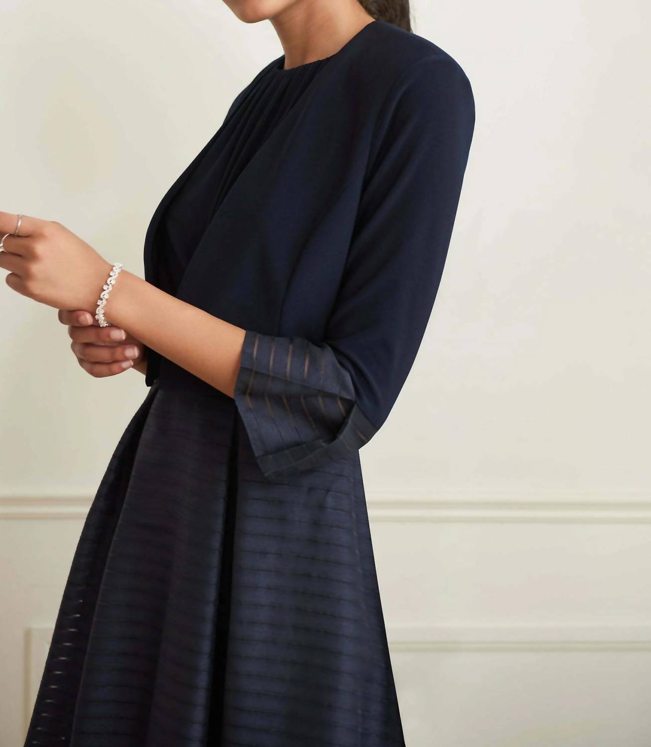 A blazer so versatile you can wear it to the office or pair it with jeans for a more casual look. Elevate your ensemble with the Women’a Striped Bolero Jacket by Joseph Ribkoff in a refined Midnight Blue. Designed with long striped burnout sleeves, this stylish bolero enhances any attire with its elegant structure. Composition: 96% Polyester, 4% Spandex. Closure: Pull-on style.