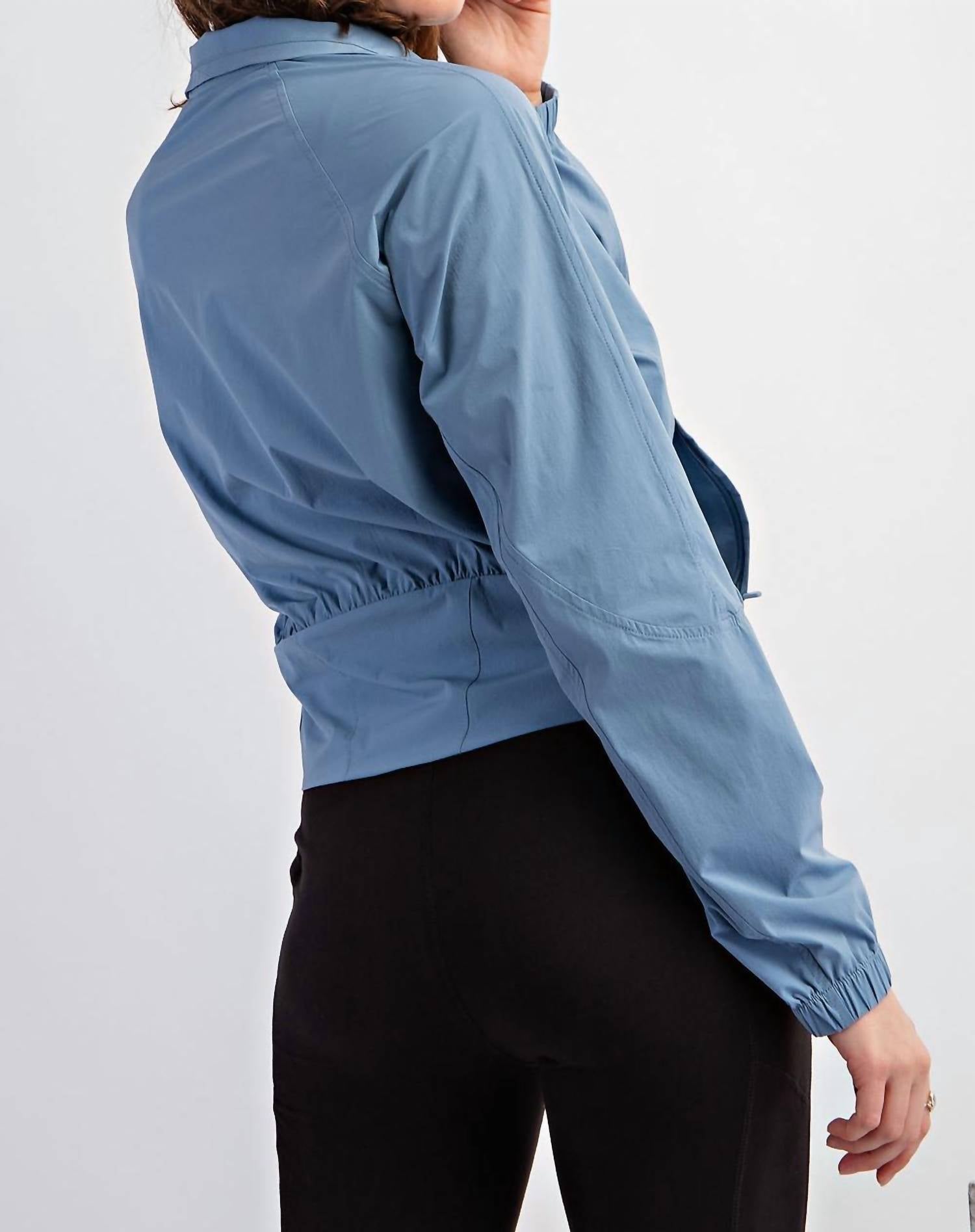 Elevate your spring wardrobe with the Lola Lightweight Jacket by RAE MODE. This cropped casual jacket features long sleeves and is crafted from a lightweight fabric blend of 90% Nylon and 10% Spandex, ensuring comfort and flexibility. It includes front pockets and a convenient zip closure for practical style. Easy to care for, this solid-color jacket is machine washable.