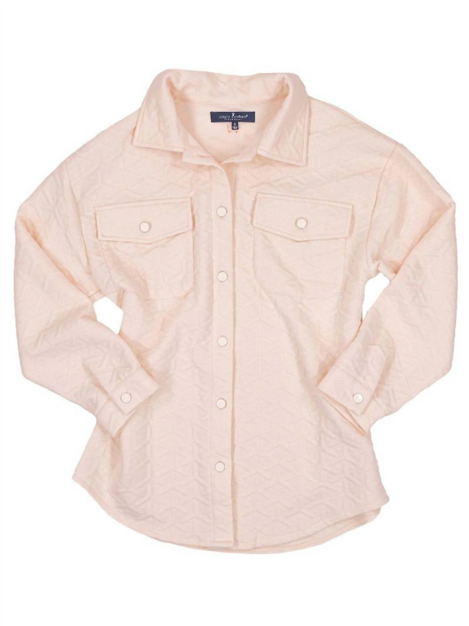 This utility jacket is the perfect combination of cool and feminine. Introducing the Quilted Button Up Shacket by Simply Southern, a must-have for your chilly day wardrobe. This long sleeve utility jacket is designed in a soft vanilla hue and made from 97% polyester and 3% spandex, offering both style and warmth. With an oversized fit for easy layering, it features a button closure, handy pockets, and a classic collared neckline. Perfect for a minimalist aesthetic, this shacket is your ideal companion for travel or Thanksgiving gatherings.