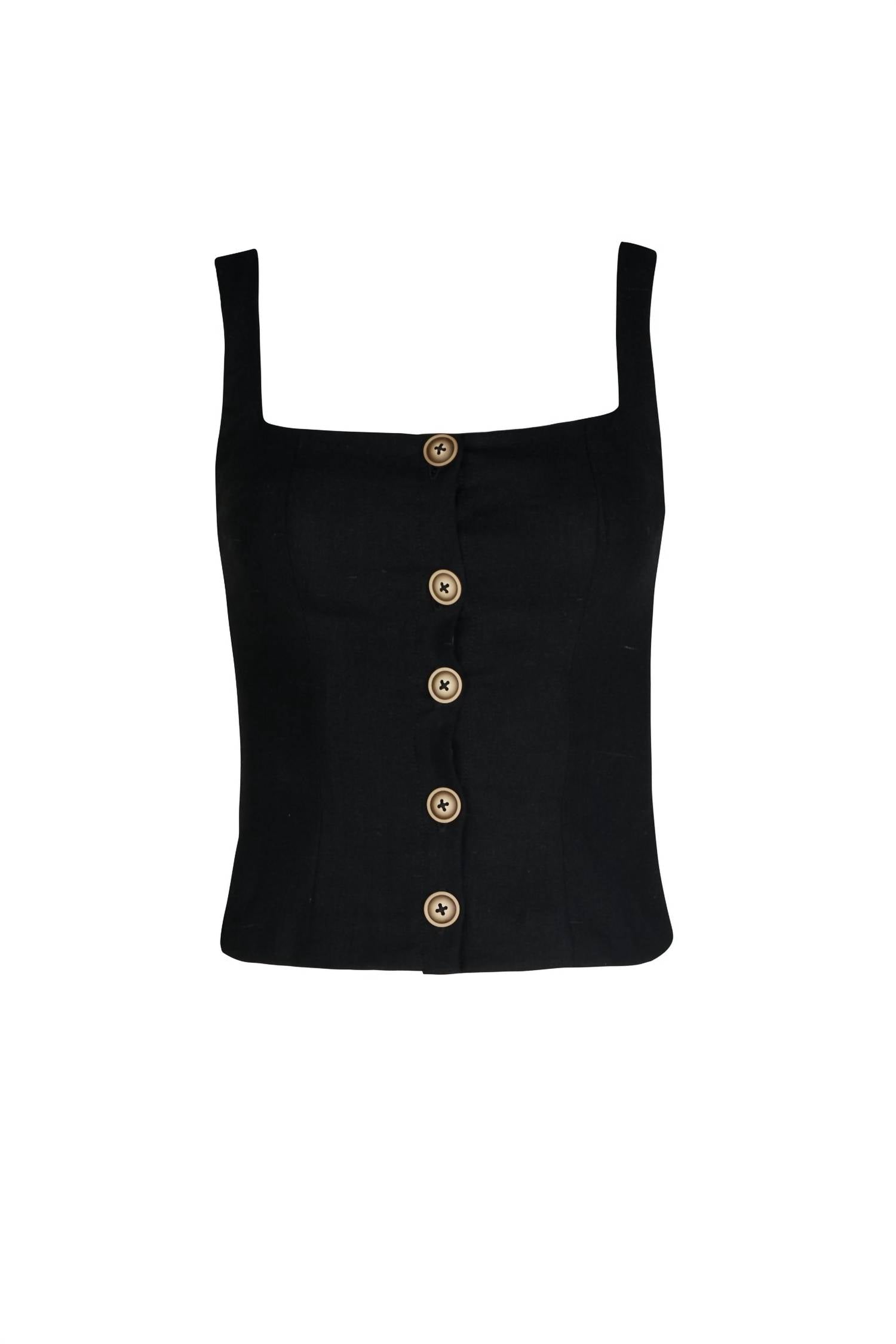 Introducing the Women's Elise Vest Top by SOAH, a chic addition to your evening event wardrobe. This sleeveless vest features a sophisticated square neckline and is crafted from soft linen. Closure: Button closure. Ideal for maintaining a monochrome look during the summer season.