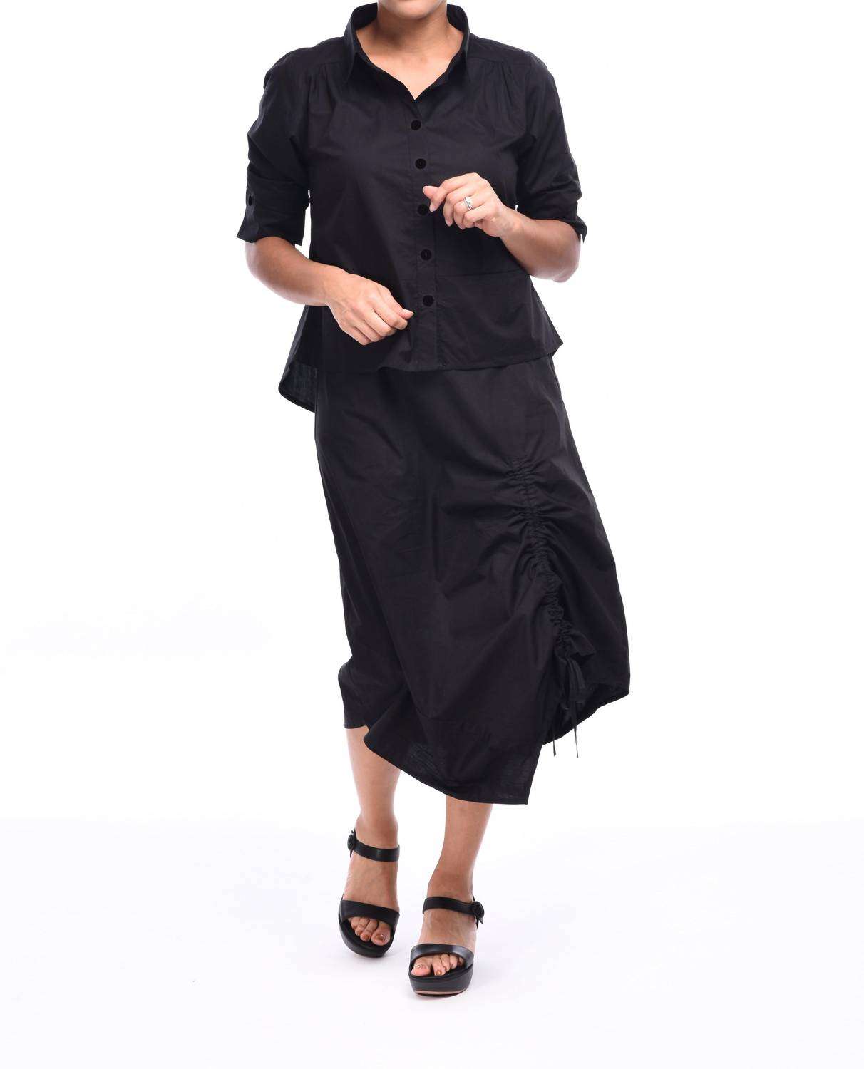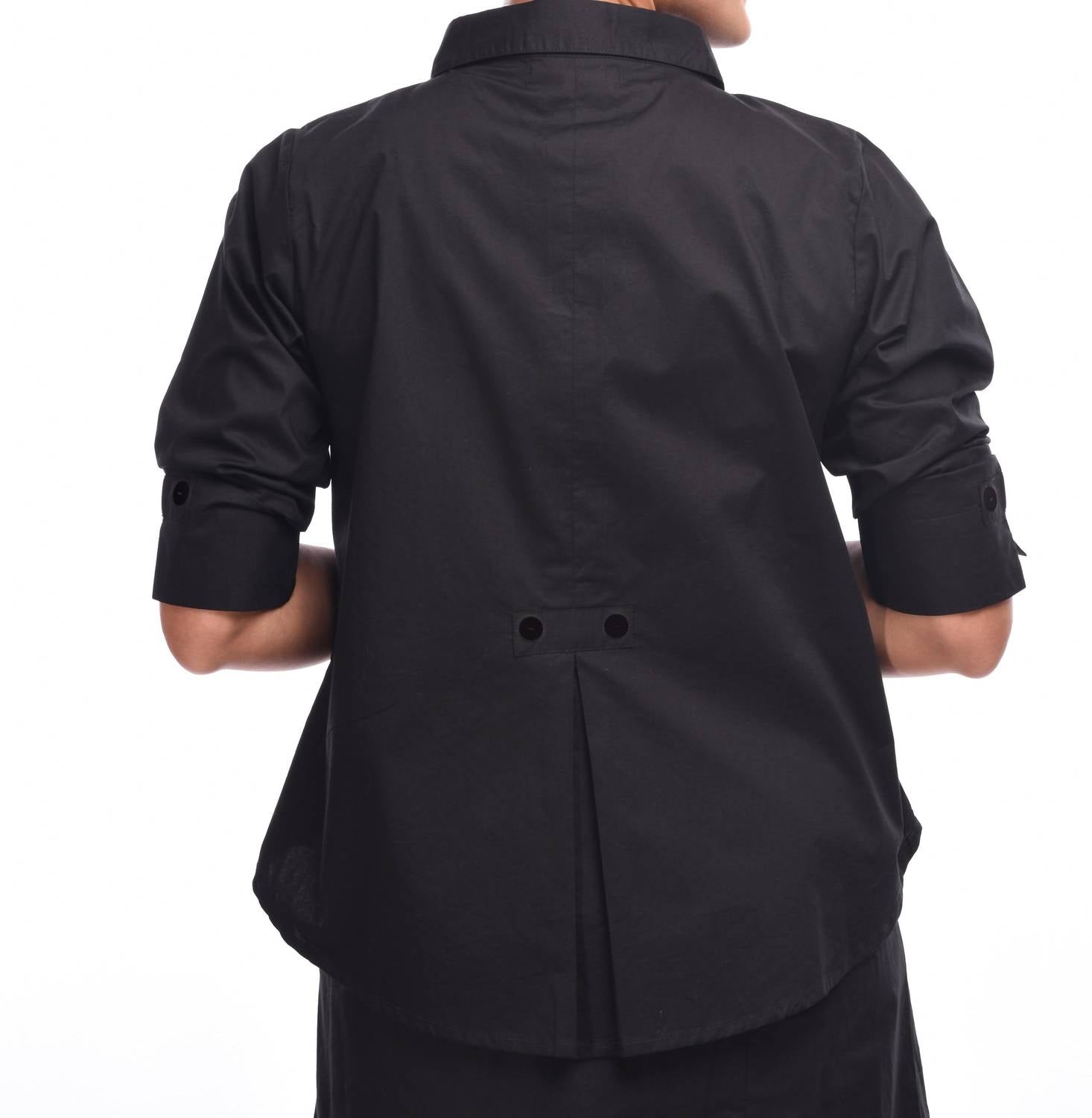 Chic addition to your fall wardrobe. Crafted from 100% cotton. Black casual jacket features a solid pattern with three-quarter sleeves and a classic collar. Designed with functional pockets and a button closure. Perfectly blends style and practicality for travel or workwear. Hand wash.