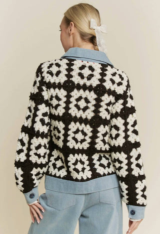 Davi & Dani - Crochet Bodice & Denim Detail Button Front Shirt Jacket