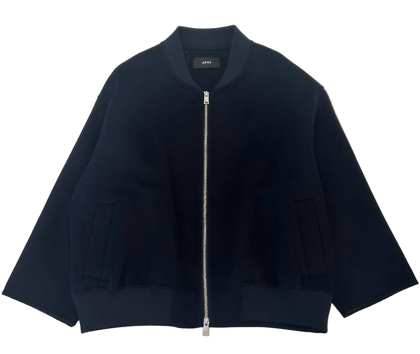 Make any outfit instantly cool by pairing it with this bomber jacket. Elevate your fall wardrobe with the Women's Mona Jacket by ARMA, styled in a chic NIGHT hue. This oversized bomber jacket features long sleeves and a ribbed collar, ensuring warmth and style with its 100% wool composition. The zip closure provides easy wearability, complemented by side pockets for added practicality. This piece is perfect for seasonal gatherings, making it a sophisticated choice for your Thanksgiving attire.