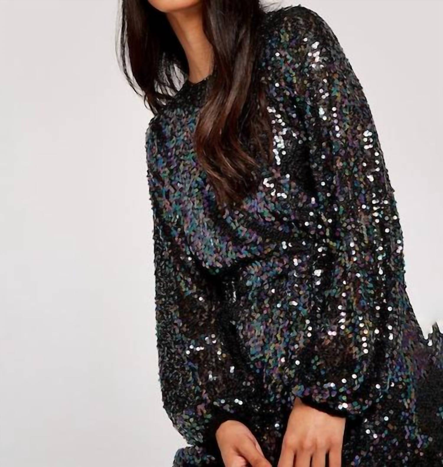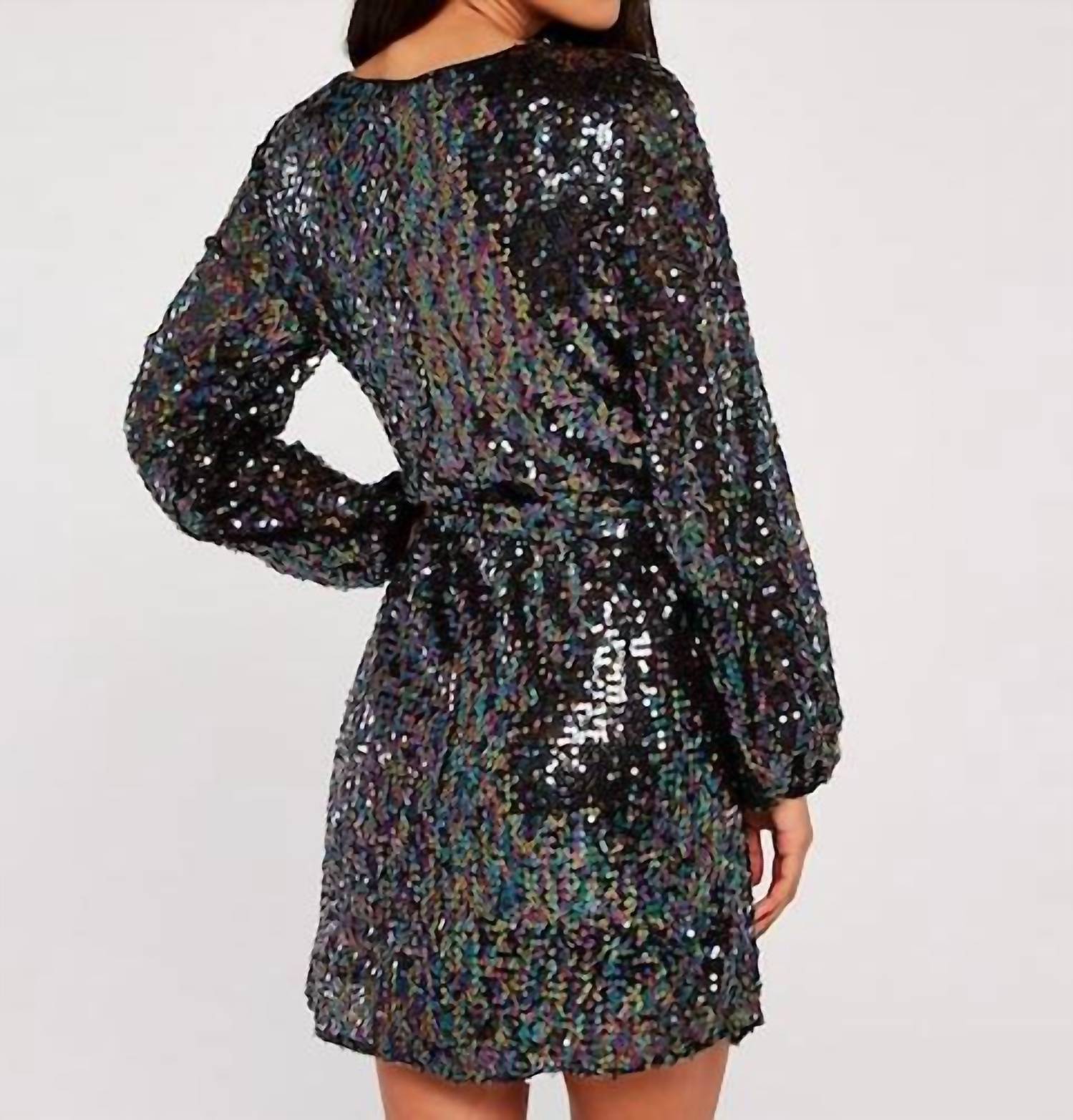 Cute and comfortable, this long sleeve dress has it all. Elevate your evening wardrobe with the Sequin Puff Sleeve Tie Waist Mini Dress by APRICOT, a stunning piece in a minimalist black design. Featuring long sequin puff sleeves and a tie waist for a flattering sheath silhouette, this dress embodies elegant textures for special occasions. Made with a luxurious blend of 100% Nylon and lined with 100% Polyester, it offers a comfortable pull-on closure. Care is easy with machine washable instructions, ensuring this dress remains a lasting staple for all your fall dinner parties and New Year's Eve celebrations.