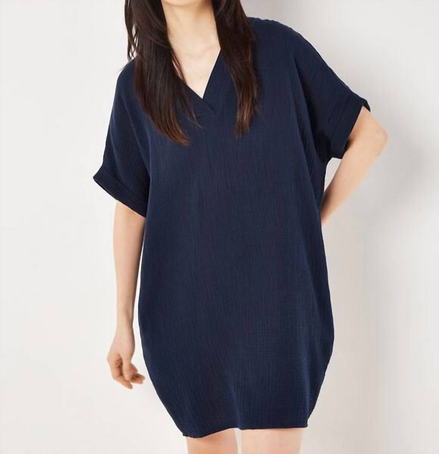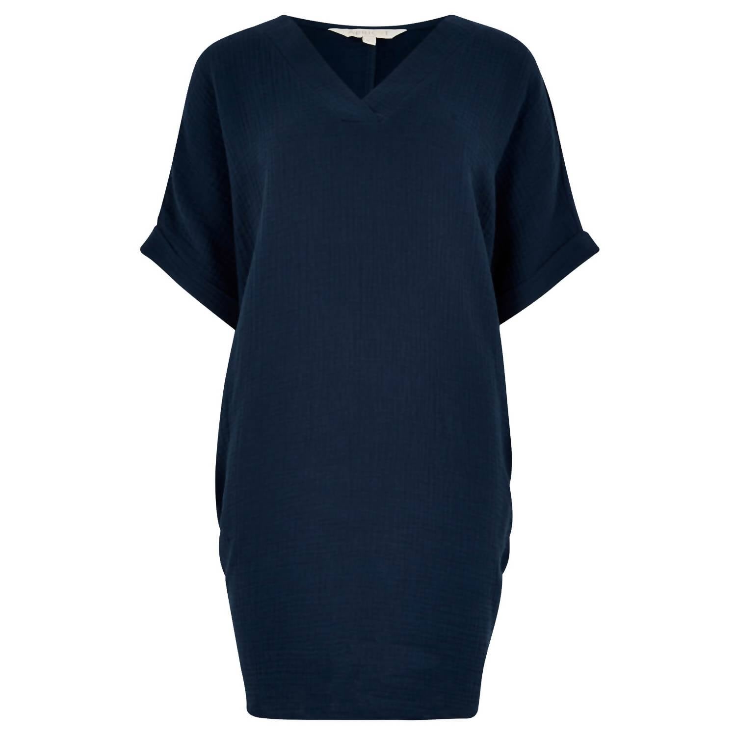 Casual, comfortable and cute! The dress that you'll be reaching for all season long. Discover effortless style with the Textured Cotton Oversized T-shirt Dress by APRICOT, perfect for those relaxed spring days. This casual dress features short, rolled sleeves and a V-neckline, crafted entirely from breathable cotton. With a shirt silhouette and pull-on closure, it measures approximately 83.4cm in length and includes convenient pockets. Care for your solid navy dress with ease—simply machine wash, and you'll be ready for your next outing.