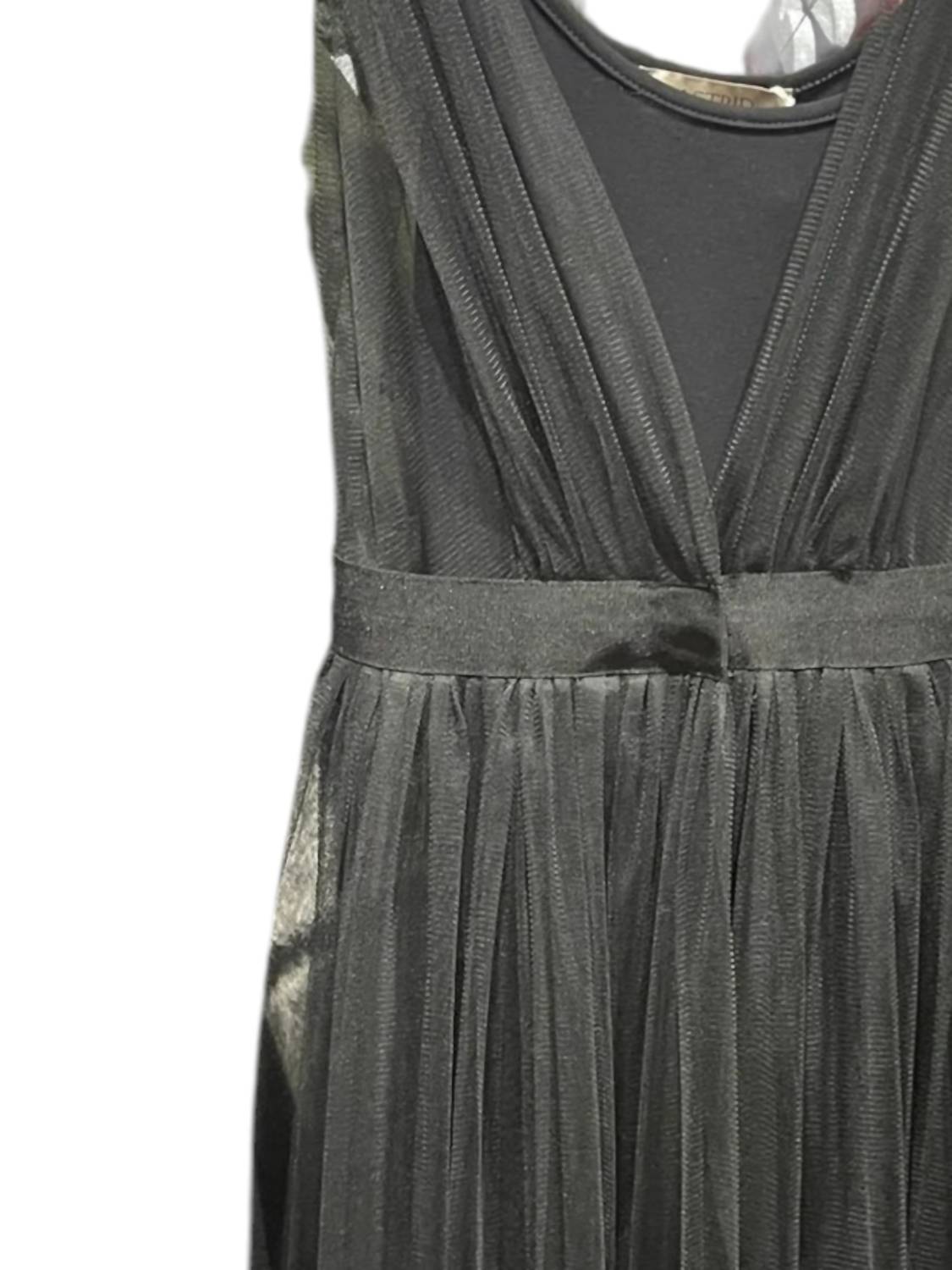 Make a statement this holiday season with the ASTRID Women's Ella Midi Dress in classic black. Designed with a V-neckline and a sleeveless silhouette, this A-line dress is crafted to create a flattering look with its textured, shirred tulle layers. Closure: Pull-on design. Care: Hand wash to maintain its delicate texture. Perfect for spring occasions and 90s-inspired fashion enthusiasts.