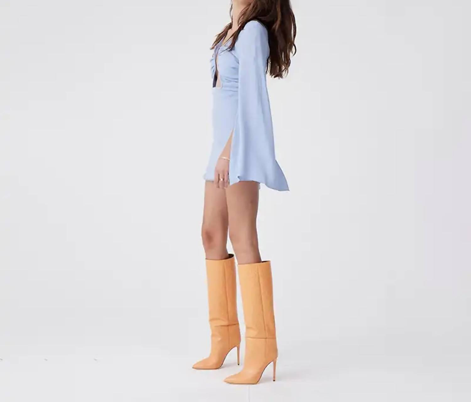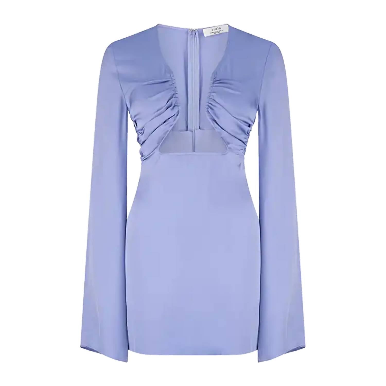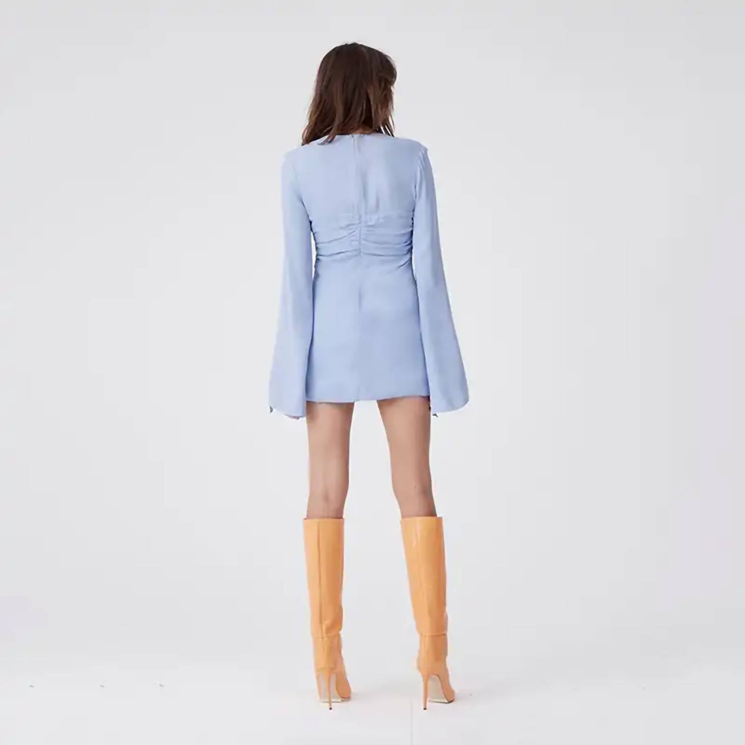 Mini dress with cut away bust detail and split hem sleeves.