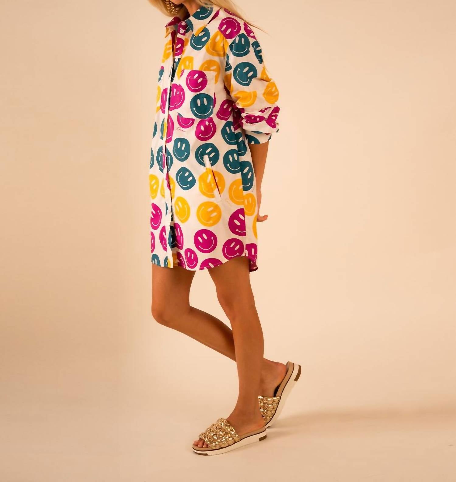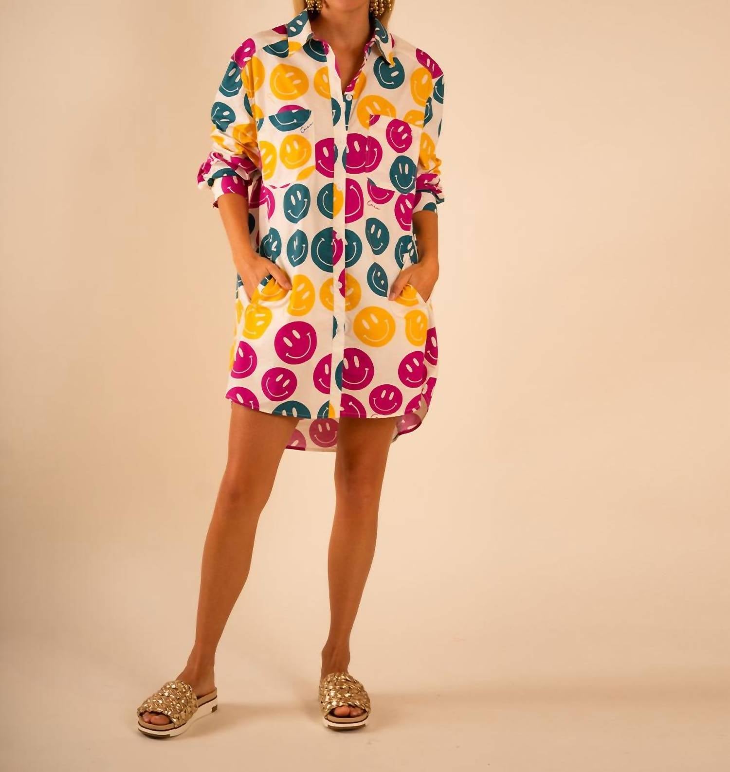 Care Tucker - Preslie Poplin Shirt Dress - All Over Smiley