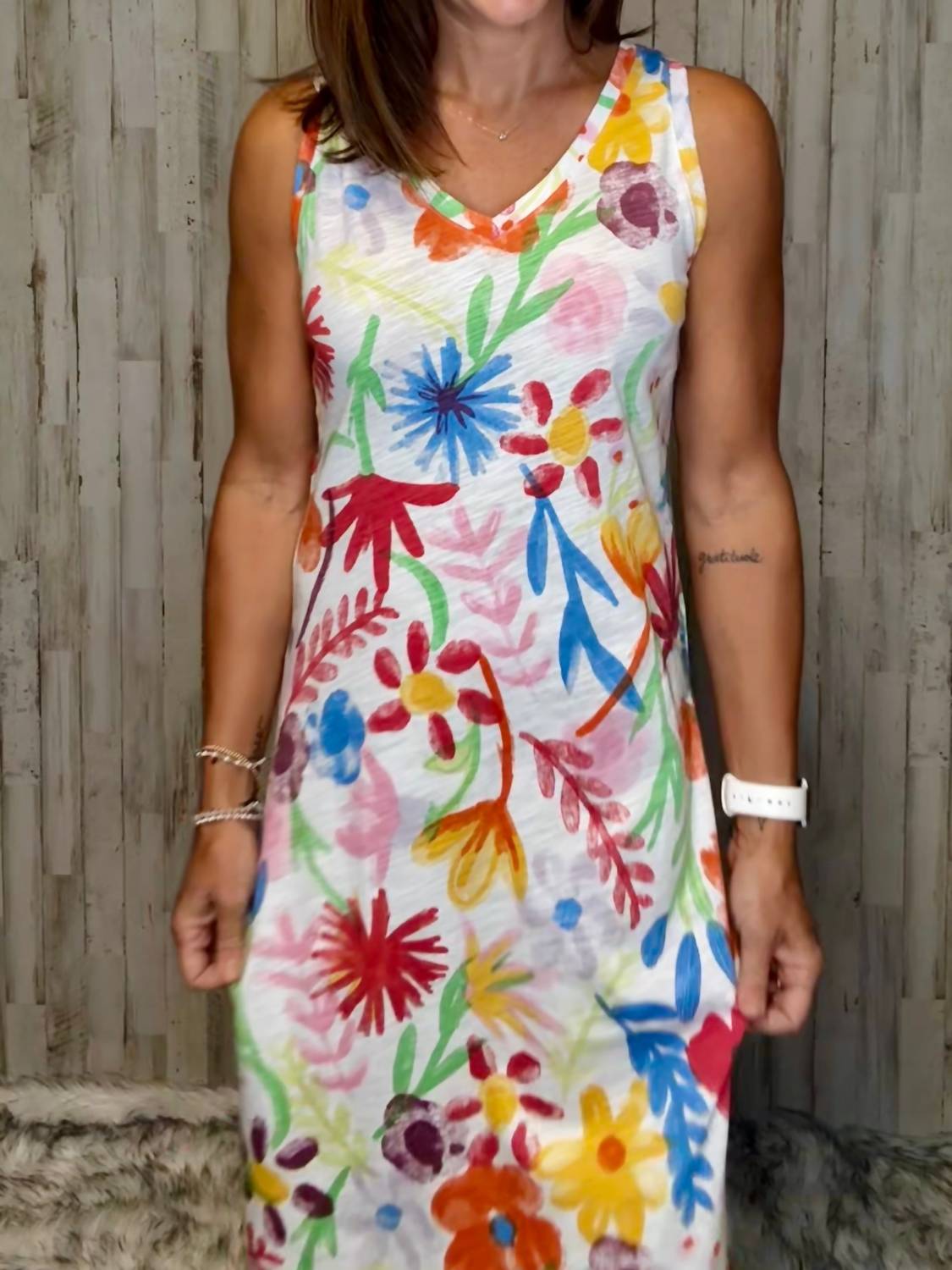 Just add slides or mules and you are good to go. Introducing the Sleeveless V-neck Dress by CHARLIE B, a must-have for the season's boho-chic look. This shift dress is made from 100% cotton, featuring a vibrant floral pattern in a midi length that's perfect for any holiday party, including Thanksgiving. With a pull-on closure and breathable material, it's ideal for those warm summer days. Care is simple with hand wash instructions, no bleach, hang to dry, low iron, and dry cleaning if needed.
