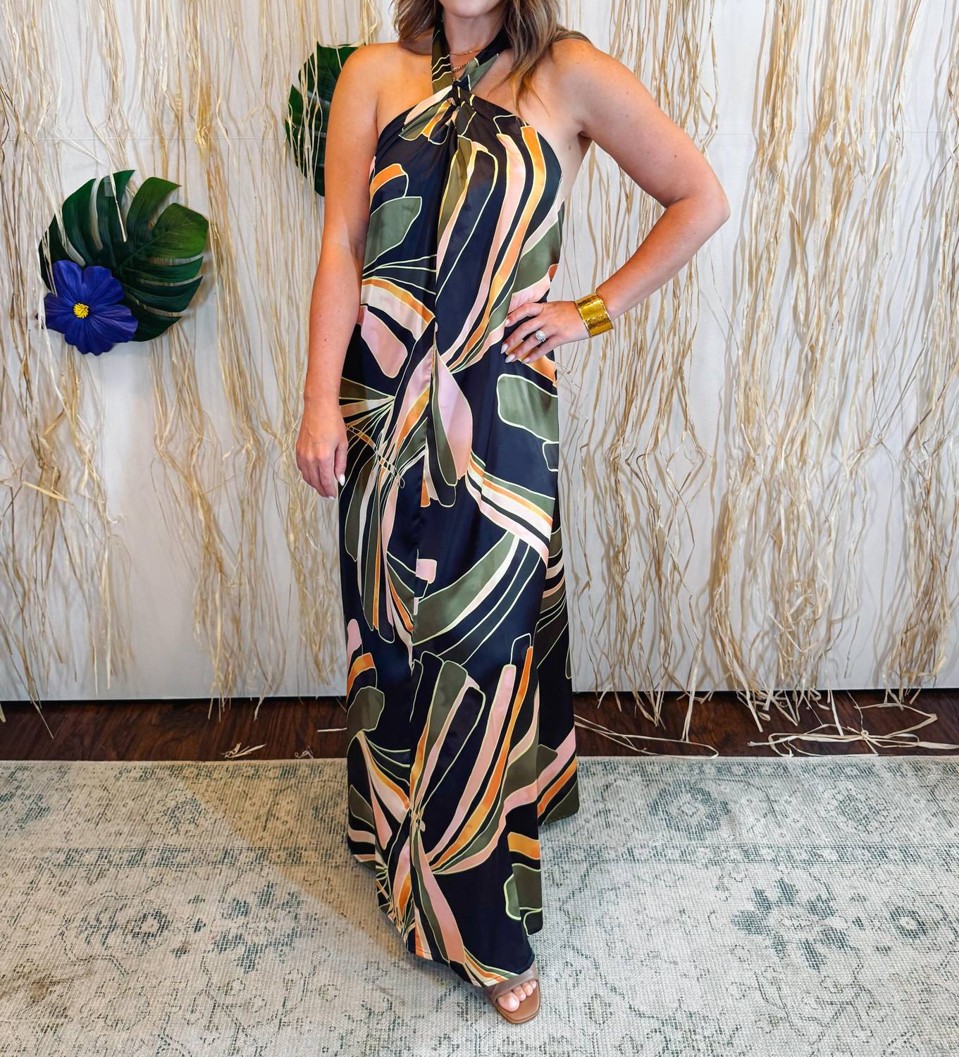A maxi dress that is just as cute as it is comfortable. Embrace effortless elegance with the Marie Halter Maxi Dress by ELAN, a stylish choice for your summer wardrobe. This sleeveless A-line dress is crafted from 100% polyester, ensuring a silky, lightweight feel perfect for sunny days. Featuring a halter neckline and a playful open-back design, the dress ties around the neck for a secure fit. Care instructions recommend machine wash cold, gentle cycle, and tumble dry low, with low iron if needed. Ideal for vacation strolls or sunset dinners, its boho chic pattern completes the look.