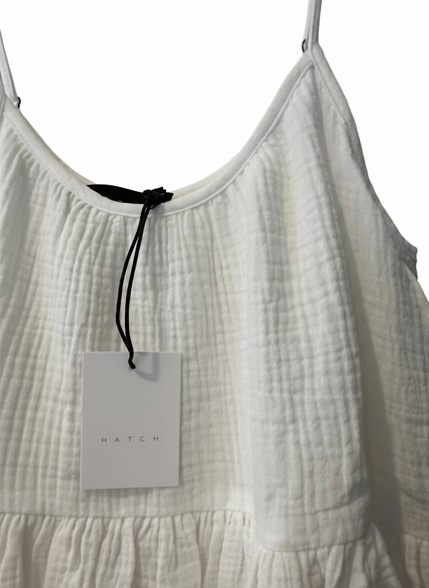 Casual, comfortable and cute! The dress that you'll be reaching for all season long. Introducing the Elodie Cotton Gauze Mini Dress by Hatch, a perfect companion for sunny adventures. This sleeveless maternity dress features a scoop neckline and adjustable straps, crafted from 100% breathable cotton for ultimate comfort. Its solid, A-line silhouette includes convenient side pockets and a pull-on closure, adding practicality to style. With a length of 38 inches, this dress is machine washable, making it an easy choice for women seeking minimalist vacation attire.