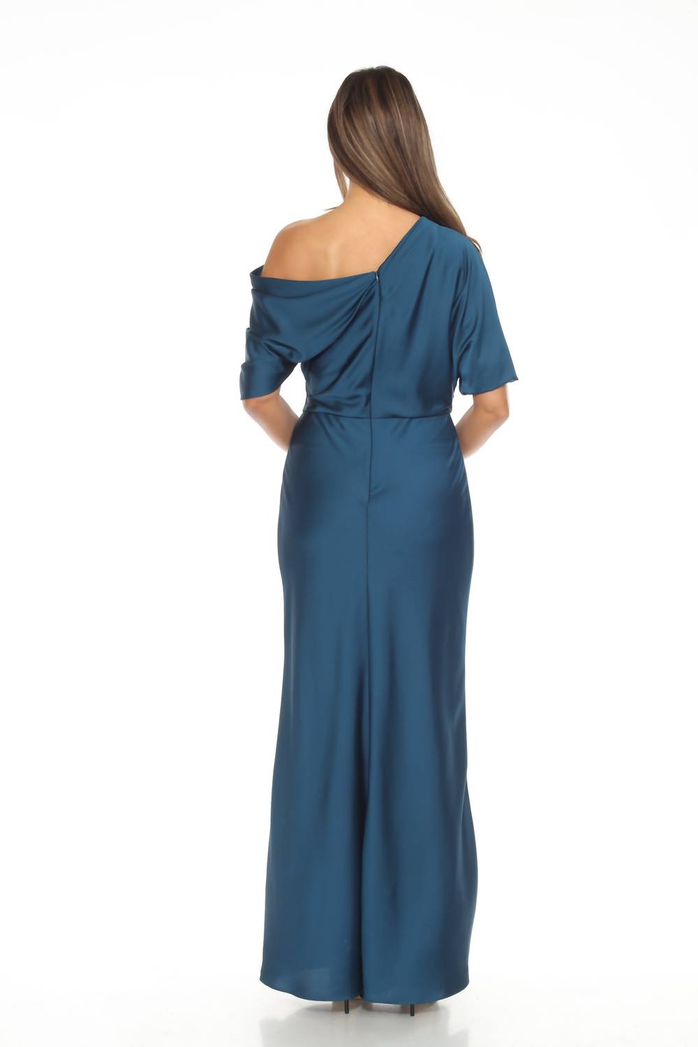 Joseph Ribkoff - Draped Cold Shoulder Satin Long Dress