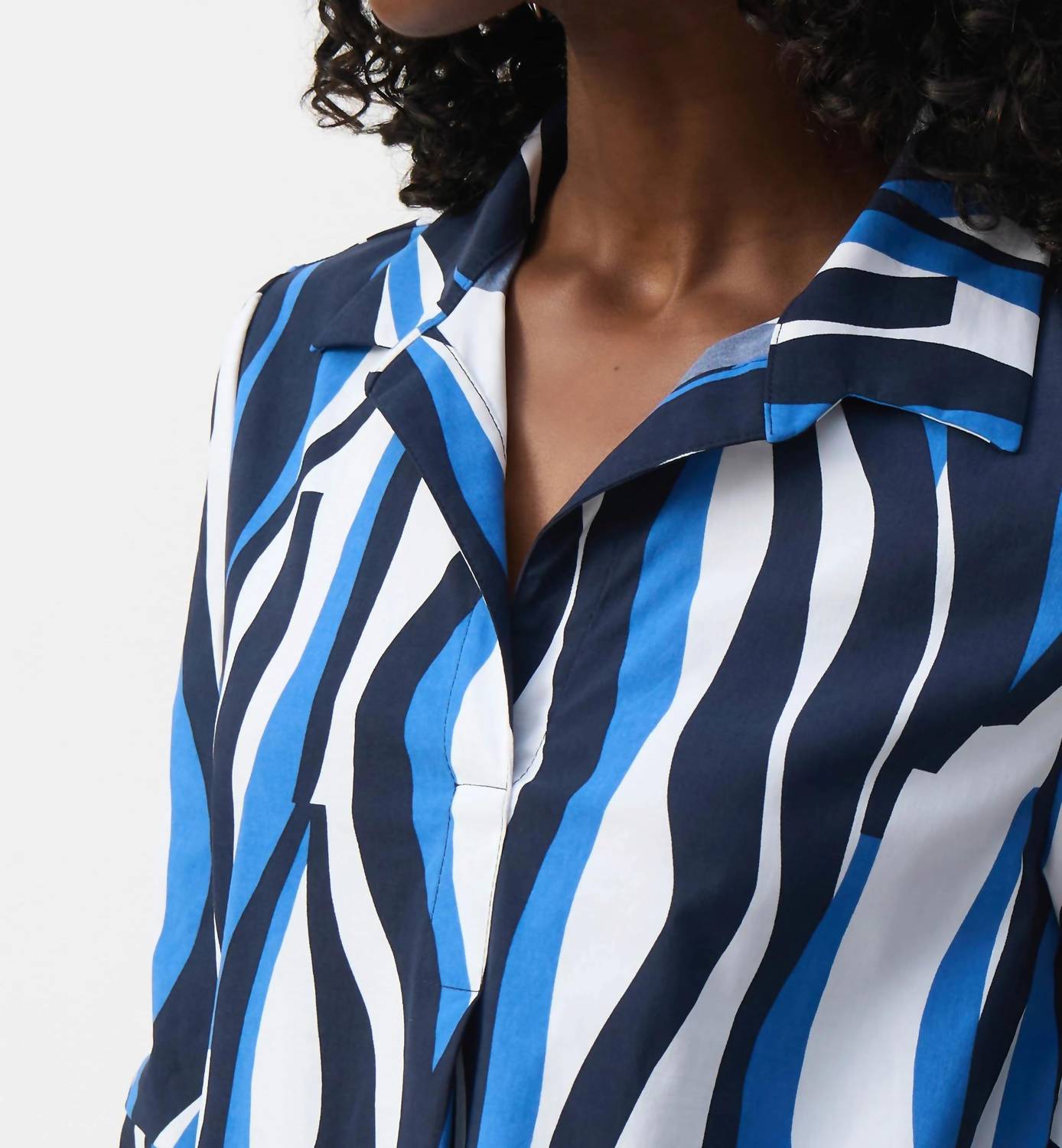 The kind of easy and flattering dress you'll be reaching for all season long. Discover the sophisticated charm of the Joseph Ribkoff Stretch Poplin Trapeze Dress, perfect for work or weekend outings. Featuring a chic shirt collar with placket and three-quarter cuffed sleeves, this knee-length dress offers a relaxed yet polished style. Crafted from a 96% Nylon, 4% Spandex blend, it provides a comfortable stretch fit. Closure: Button closure. Care: Hand wash in cold water, hang to dry in the shade, and wash the garment inside out. Model is 5'9.5" and is wearing a size 6.