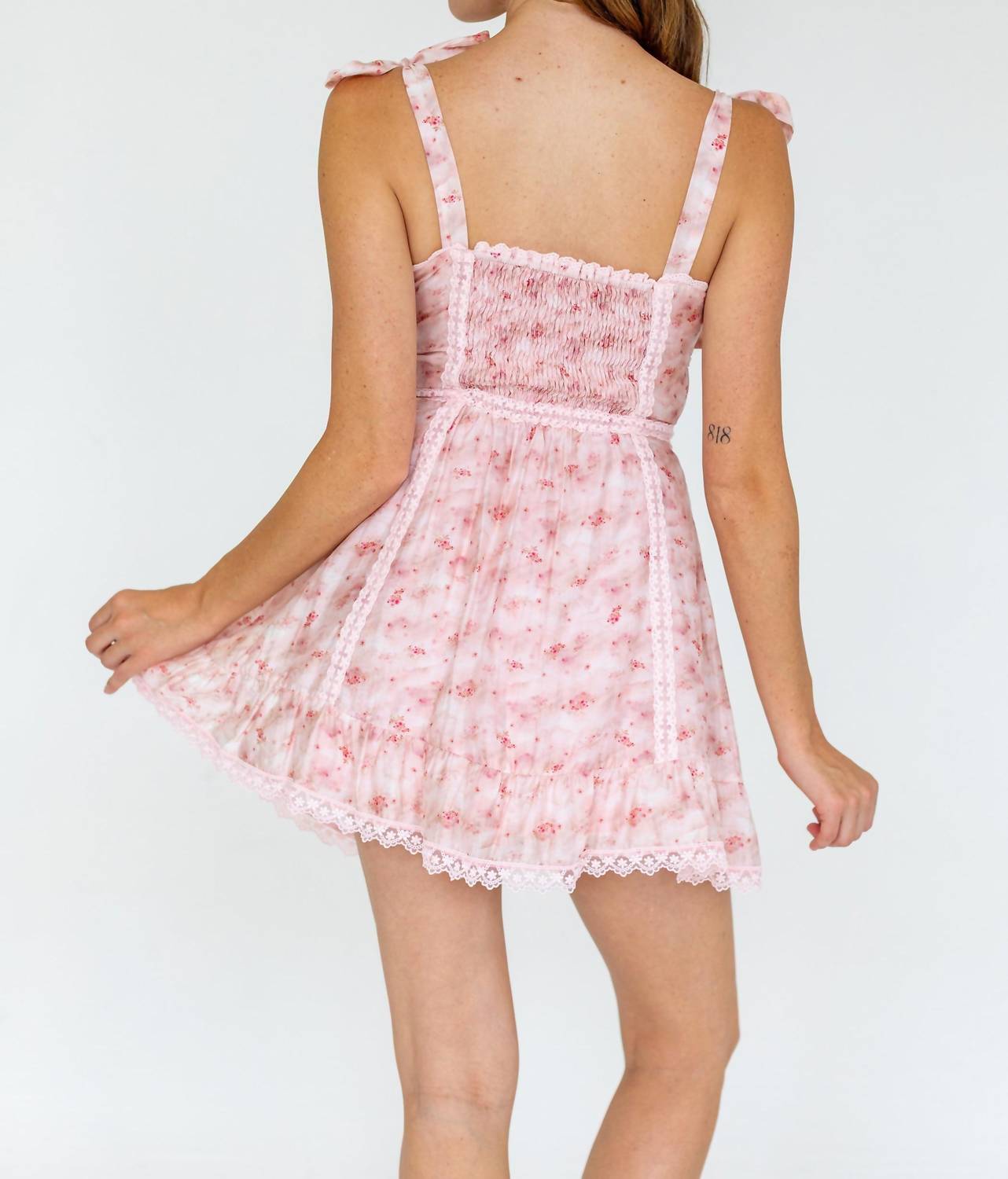 Pair with your favorite sandals for an effortlessly chic look. Discover the Raelynn Floral Dress by KESTAN, an essential for your wardrobe's boho chic collection. This sleeveless fit and flare dress showcases a soft pink floral lace design with adjustable shoulder straps for a customized fit. Featuring an elastic shirring at the back and a discreet side zipper, it merges comfort with style. Care is simple with machine wash instructions, making it a delightful choice for casual outings or a special Valentine's Day celebration.