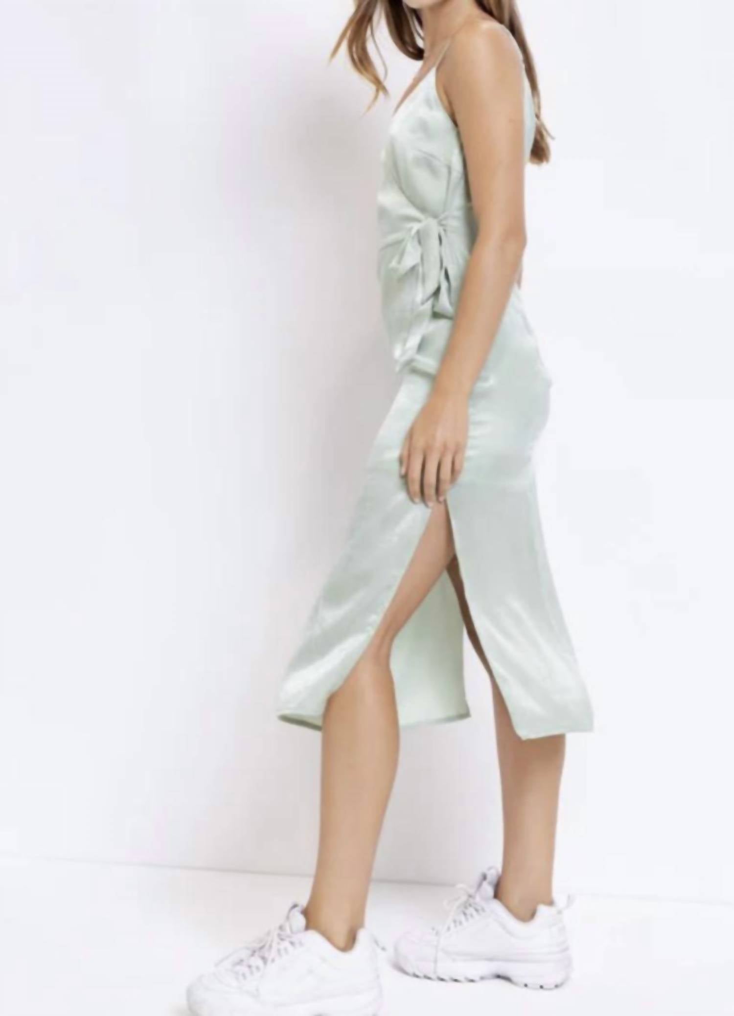 Just add slides or mules and you are good to go. Pistachio Green Satin Wrap Dress. This effortlessly elegant piece combines a soft, silky feel with a flattering wrap silhouette—perfect for spring occasions, date nights, or any moment that calls for a subtle statement. Soft satin fabric Wrap-style design Flattering V-neckline Spaghetti straps Midi length with side slit Lined