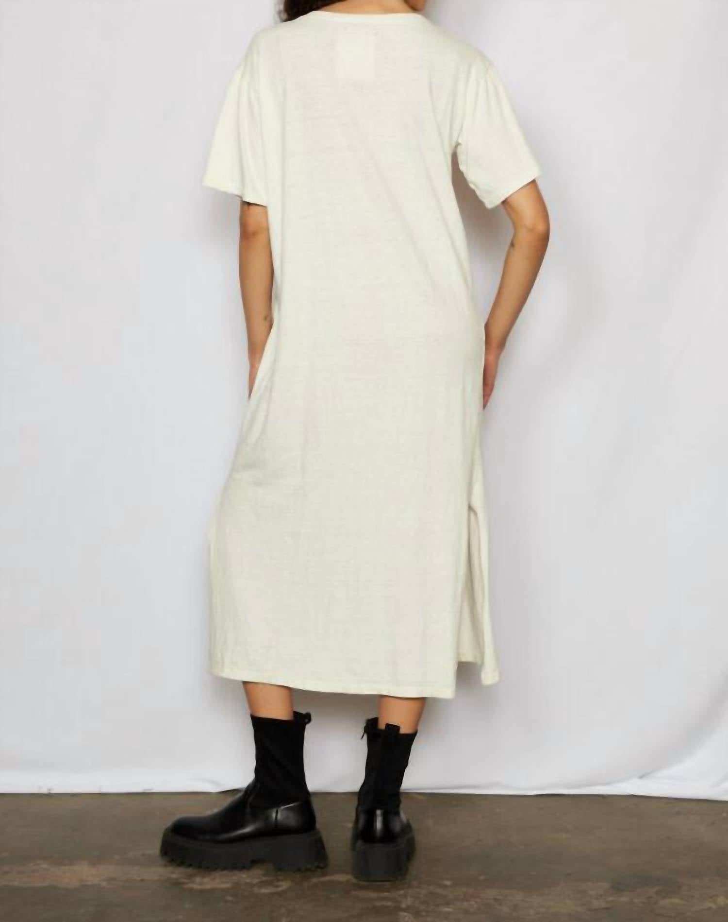 Celebrate your style and sustainability with the Grateful Dead Bear Maxi Dress by People of Leisure. This shirt silhouette maxi in light yellow features short sleeves and a classic crewneck for a laid-back, yet chic look. Crafted from 50% recycled cotton and 50% organic cotton, this piece is made in the US and embraces eco-conscious fashion. With a convenient pull-on closure, you'll find it easy to wear, while hand washing ensures its distinctive graphic pattern maintains its individuality.