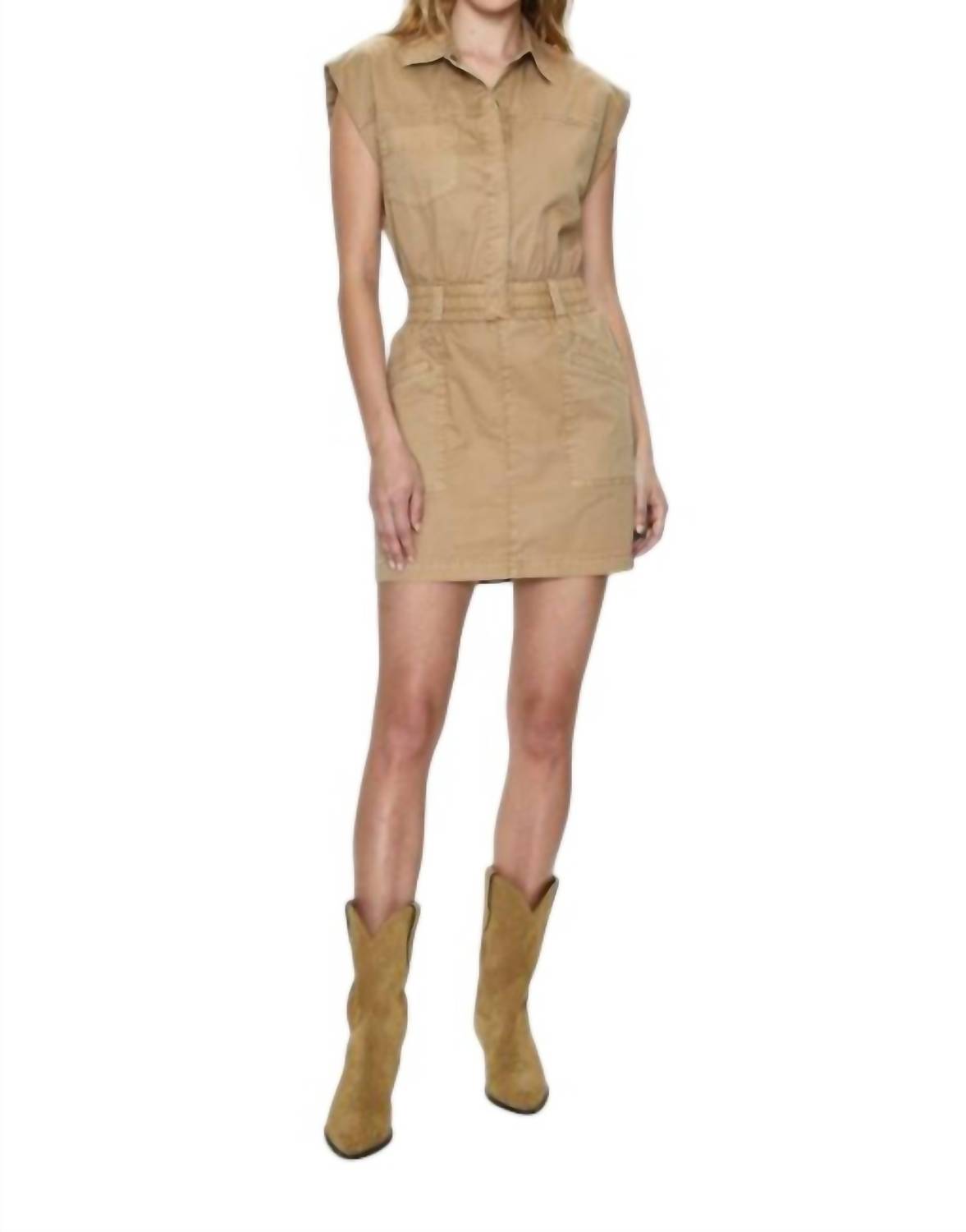 The kind of easy and flattering dress you'll be reaching for all season long. The Rosie Mini Dress by PISTOLA is a charming addition to any wardrobe, offering a youthful and playful A-line silhouette. Made from soft cotton, it features a sleeveless design perfect for warm-weather outings. The dress comes in a chic coconut color and is equipped with practical pockets and a smart collar neckline. Complete with a convenient button closure, it's both stylish and functional.