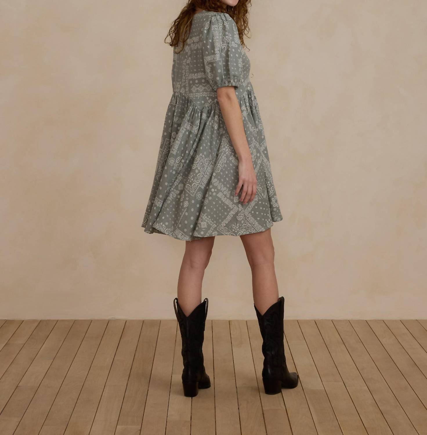 A short and breezy dress for those warmer days. Fall in love with the Rylee & Cru Women's Rose Dress in Laurel Bandana, a whimsical patterned piece perfect for Boho Chic vibes. This A-line mini dress features short gathered puff sleeves and a flattering scalloped waist seam, crafted from a comfortable blend of 55% Cotton and 45% Linen. Enjoy the ease of machine washing, with the option of tumble drying at low settings, though minor shrinkage may occur.