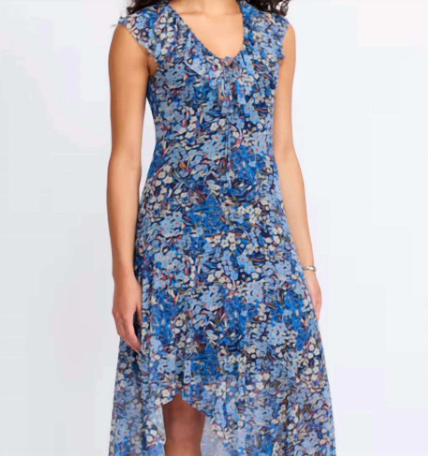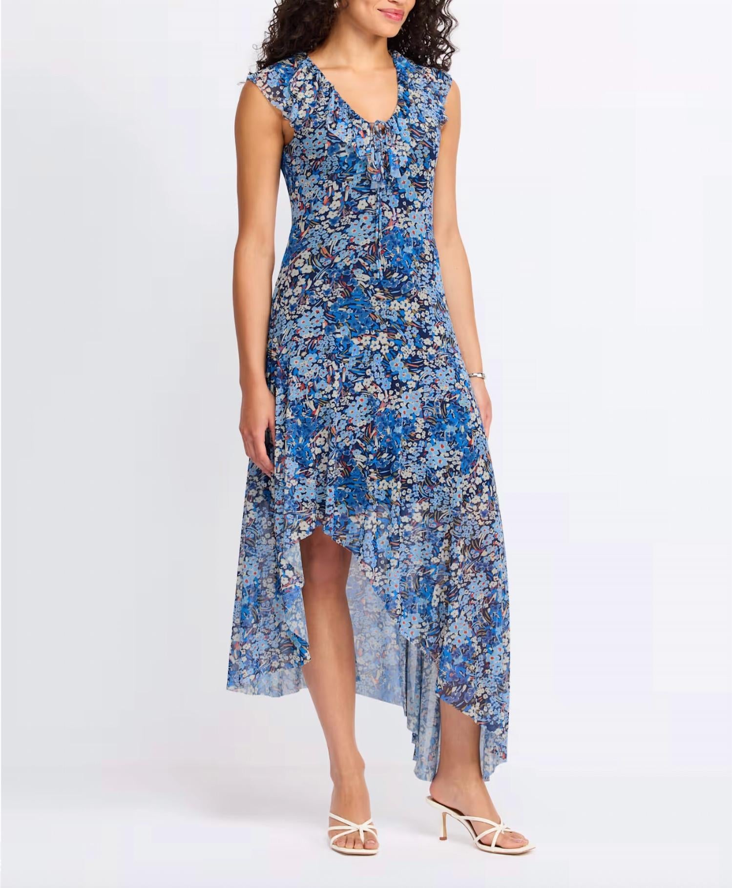 Pair with your favorite sandals for an effortlessly chic look. Meet the Hattie Dress by Steve Madden, a fresh addition to your spring wardrobe. This sleeveless empire waist dress comes in a vibrant blue floral pattern, perfect for any casual occasion. Made from 96% polyester with 4% elastane, its machine-washable composition ensures easy care. Featuring a flattering V-neckline, this dress ensures you look effortlessly chic all season long.