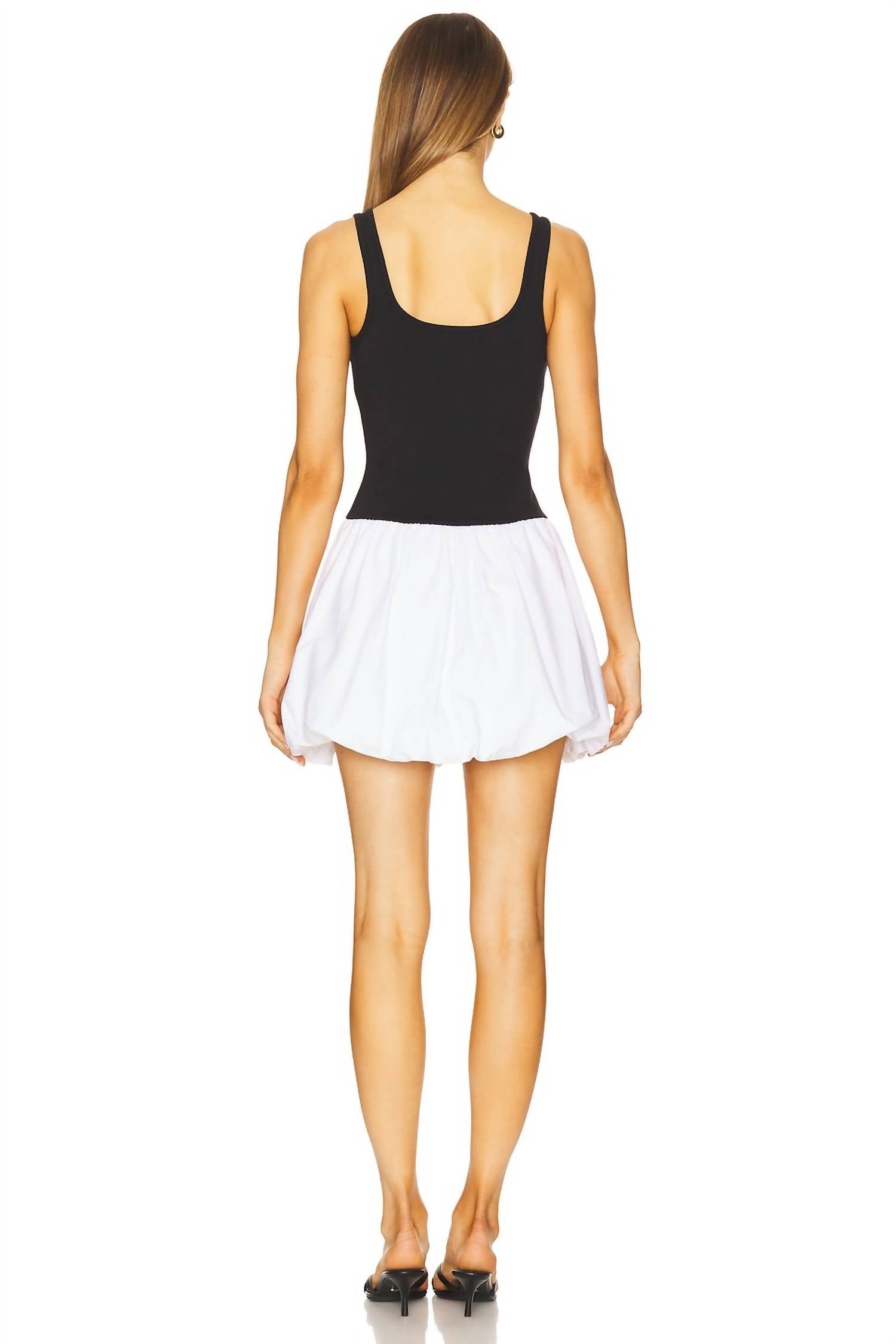 Embrace effortless style with the Linnea Dress by Steve Madden, a black and white fit-and-flare mini dress that speaks to minimalist tastes. This sleeveless dress comes crafted from a blend of 88% cotton and 12% spandex, complemented by a 100% polyester lining and a contrast poplin skirt for a unique look. Designed with a scoopneck and bubble hem, the dress features midweight jersey fabric and convenient pull-on styling. Care for this elegant piece by machine washing it, making it the perfect choice for summer vacations.