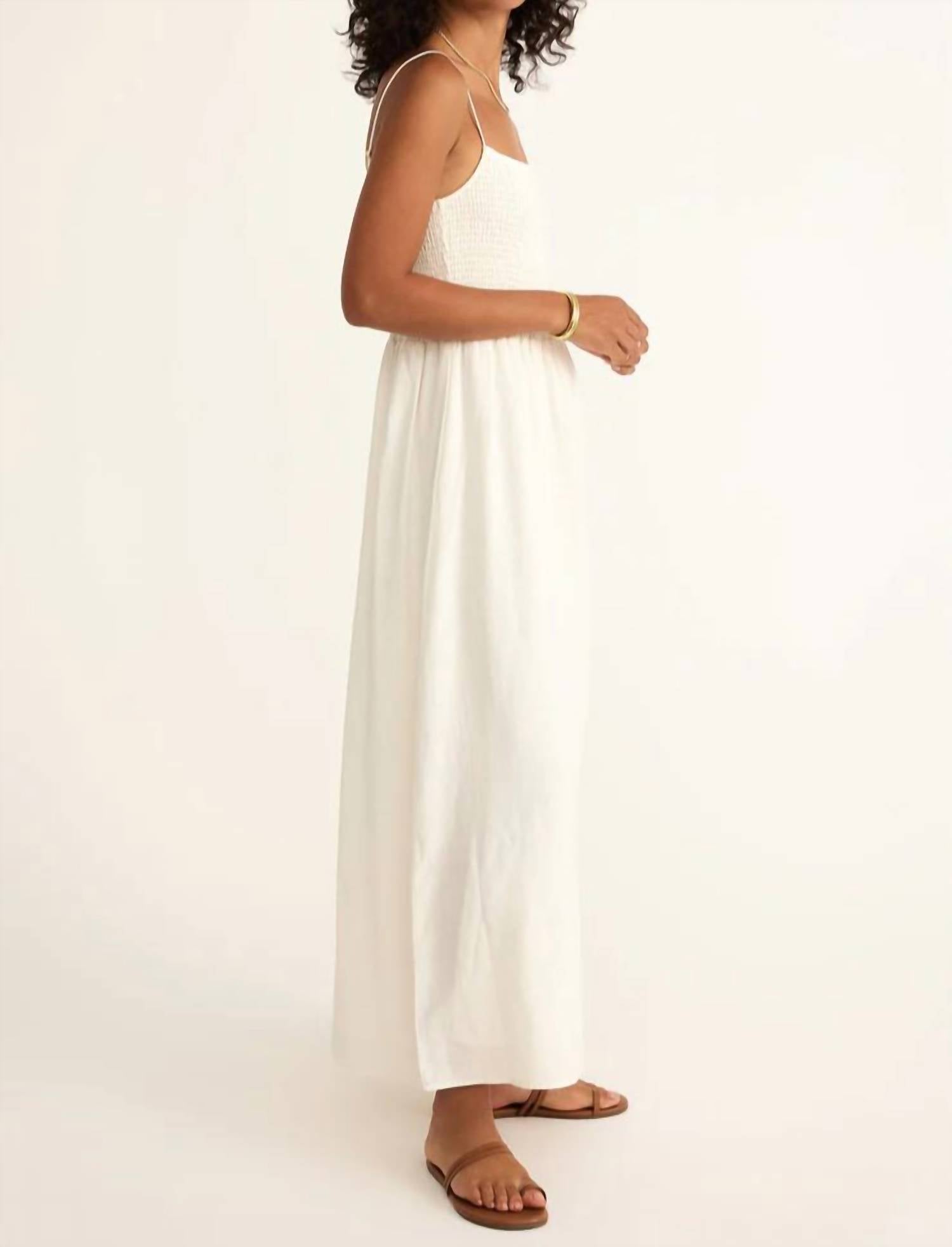 A maxi dress that is just as cute as it is comfortable. Embrace effortless elegance with the Bayside Linen Maxi Dress by Z Supply, perfect for sun-soaked days. This maxi dress features slender spaghetti straps and a flattering squareneck that highlight its minimalist style. Crafted from a breezy Linen Blend composing 55% Linen and 45% Rayon, it boasts a flowing A-line silhouette with a smocked bodice that provides a comfortable fit. Designed for ease, it comes without closures and requires simple machine wash and line dry care, making it an ideal addition to your summer wardrobe.